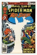 $23.00"Sword of the She-Devil" Guest-starring Spider-Man and Red Sonja. Plot and Script by Chris Claremont. Plot and Pencils by John Byrne. Inks by Terry Austin. Cover by John Byrne and Terry Austin. An emergency situation is developing at the Metropolitan Museum of Art! The Daily Bugle dispatches Peter Parker and a reporter to the site, but someone else sneaks along...Mary Jane Watson! The web-slinger quickly enters the museum and is attacked by grotesque monsters! Mary Jane rushes inside to help the struggling wall-crawler, but what can she do? How about grab the ancient sword of Red Sonja! And in a dazzling transformation...Mary Jane Watson becomes Red Sonja! Now the Amazing Spider-Man and the She-Devil with a Sword team up against the evil sorcerer Kulan Gath! Will New York City survive...and Ms. Watson too? An excellent story! Cameo appearance by Clark Kent on page 3. (Notes: This is a key appearance of Mary Jane Watson during the time period (between 1979 and 1983) when she rarely appeared in any of the Spider-Man titles. Kulan Gath appears next in Uncanny X-men 190. This is the final issue of the Claremont-Byrne run on the Marvel Team-Up title. This issue was reprinted in Marvel Tales 208.) 36 pages. Cover price $0.35.