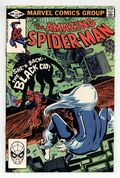 Direct Edition. "But the Cat Came Back" Part 1 of 2. Script by Roger Stern. Art by John Romita Jr. (breakdowns) and Jim Mooney (finishes). Cover by John Romita Jr. and Al Milgrom. Because the fans demanded her, the Black Cat is back! And flirting and fighting with the web-slinger all over again! After Felicia escapes from the psychiatric hospital, she resumes her high-dollar heists! But soon realizes that it's not as much fun without Spider-Man chasing her! So, the cat burglar extraordinaire arranges an evening rendezvous with her favorite wall-crawler at their first date location (from Amazing Spider-Man 194). Will the enchanting cat mesmerize the Spectacular Spider-Man once more? Or can the web-slinger resist her feline charms? An excellent issue! Cameo appearances by the Foolkiller and Captain Jean DeWolff. (Notes: This was a highly anticipated issue for fans of the wall-crawler; and Stern & Romita Jr. did not disappoint. The Black Cat previously appeared in Amazing Spider-Man 205. This story was reprinted in Spider-Man Magazine 2 and also in the trade paperback: Spider-Man vs. the Black Cat (2005). The back cover features a full-page ad for Dungeons & Dragons with art by Bill Willingham.) 36 pgs. Cover price $0.60.