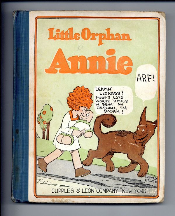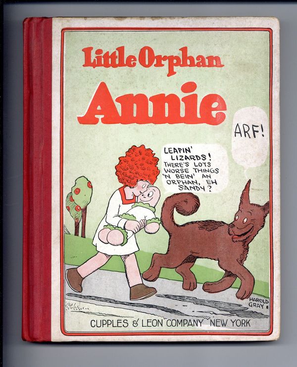 Published 1926 by Cupples & Leon.$44.00No dust jacket. Little Orphan Annie by Harold Grey, copyright 1926, Cupples & Leon Company. Hardback, 100-pages, 7 x 8-3/4 inches, color cover with black-and-white newspaper pre-prints interior, no cover price. NOTE: Spine may be one of several colors.