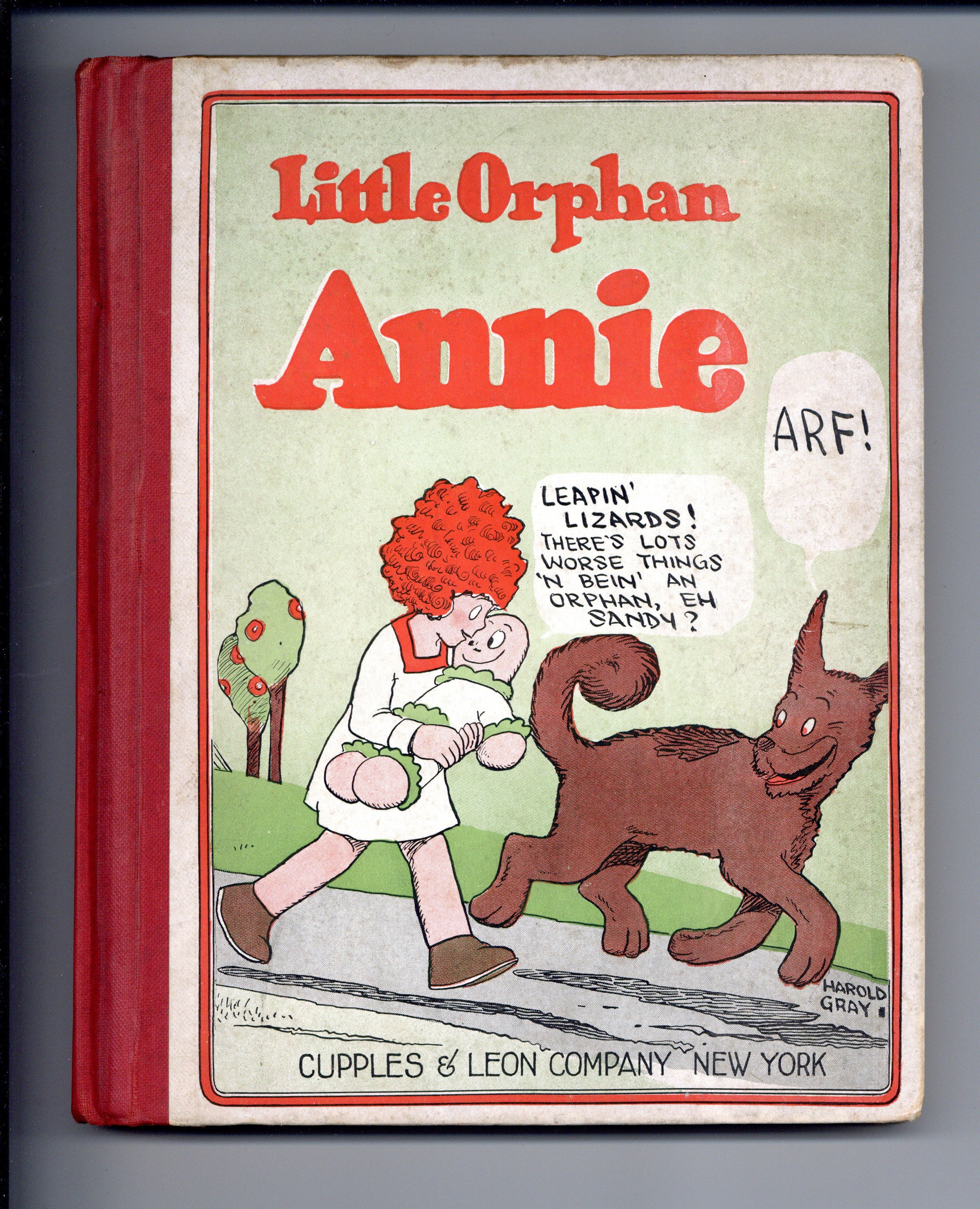 Tags: Platinum AgePublished 1926 by Cupples & Leon.$125.00No dust jacket. Little Orphan Annie by Harold Grey, copyright 1926, Cupples & Leon Company. Hardback, 100-pages, 7 x 8-3/4 inches, color cover with black-and-white newspaper pre-prints interior, no cover price. NOTE: Spine may be one of several colors.