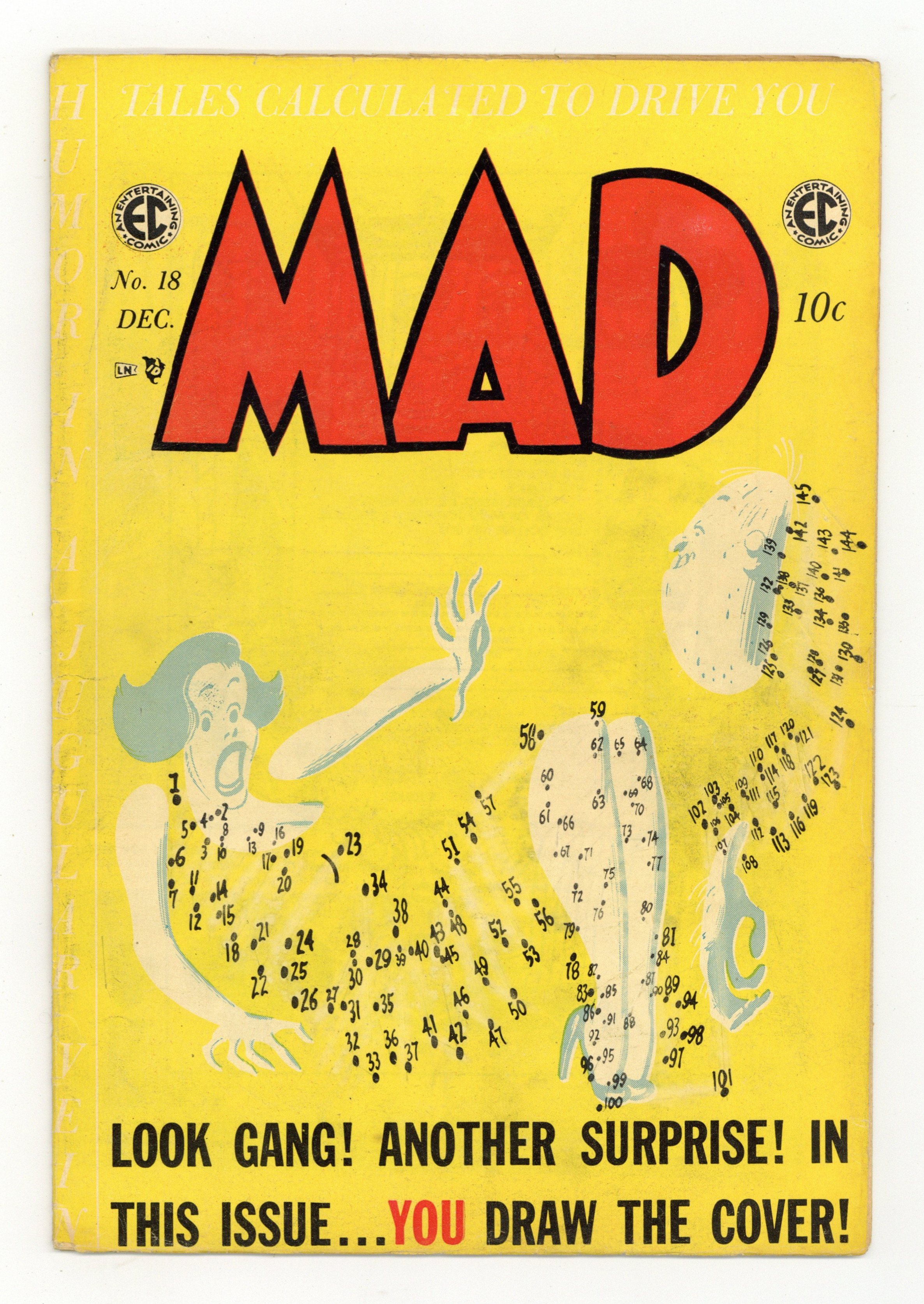 Cover by Harvey Kurtzman. Ad for Panic comic book. "Alice In Wonderland!", script by Lewis Carroll (original) and Harvey Kurtzman (adaptation), art by John Tenniel and Jack Davis; After Alice's adventures, her sister takes her to a psycho-analyst; A parody of parts of both Alice In Wonderland and Alice Through The Looking Glass, using some of the original John Tenniel illustrations as base drawings. "Howdy Dooit!", art by Bill Elder; Howdy hawks advertisers' wares while Buffalo Bill tries to keep the crowd in line... but fails; Parody of the Howdy Doody TV show. Ad for Piracy comic book. "Pot-Shot Pete," script and art by Harvey Kurtzman; Pete brings in the McYetnits against all odds. "Stalag 18!", art by Wally Wood; Stepton and Lt. Wunbar excape the stalag after finding a spy in the prisoners' ranks; Parody of movie Stalag 17. 36 pgs., full color. $0.10. Cover price $0.10.