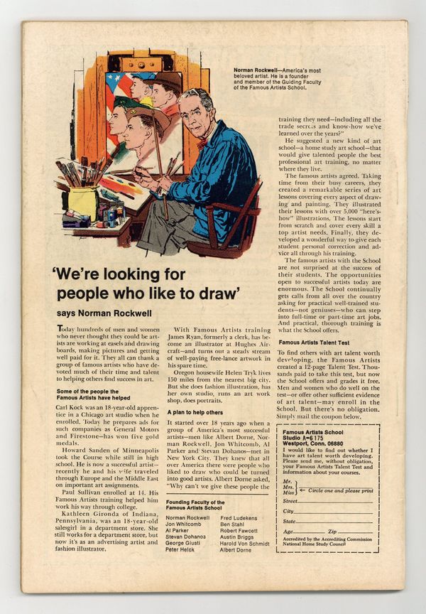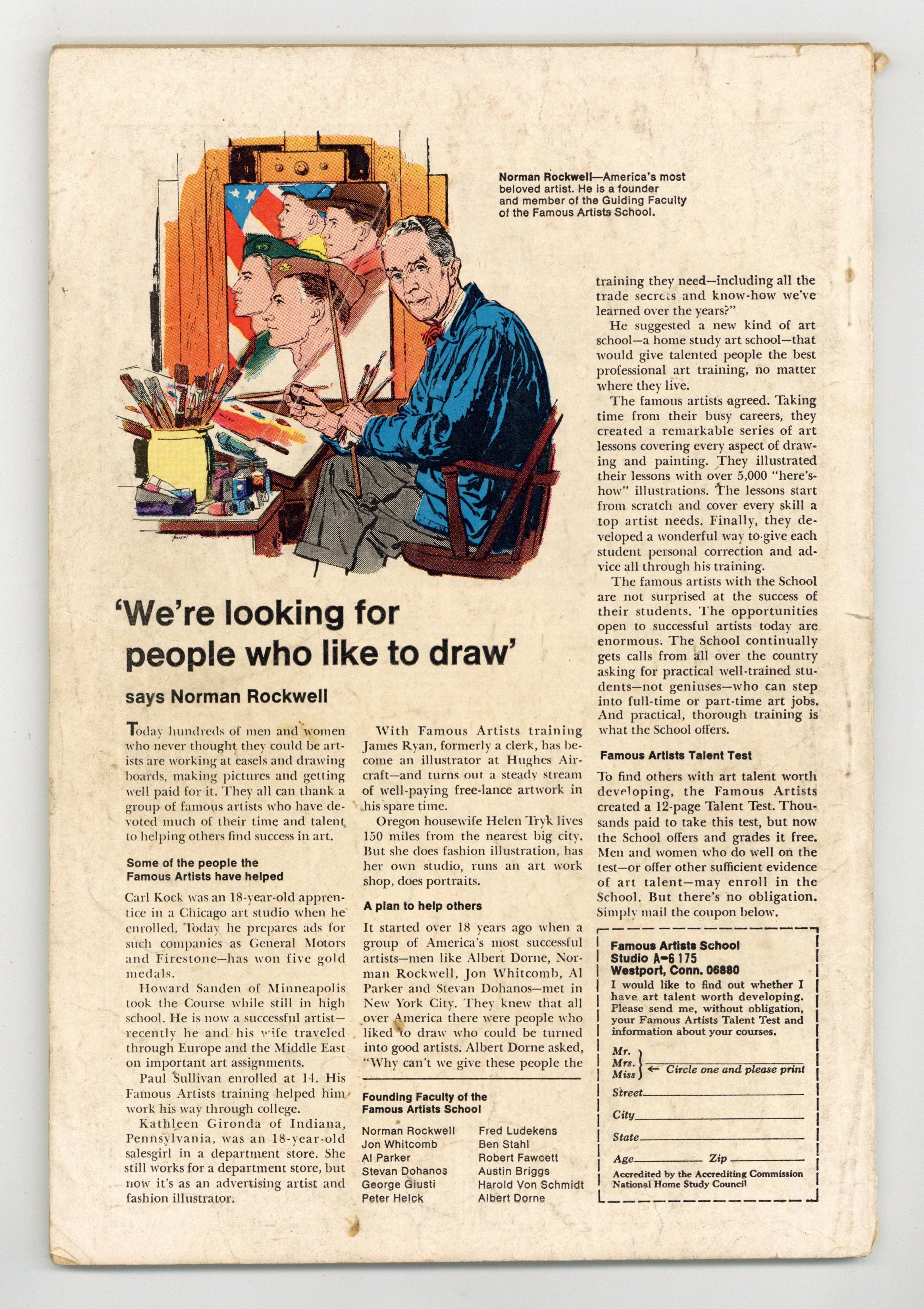 Tags: Spider-Man$53.00This annual features three reprint stories and a new cover by John Romita. First story reprinted from Amazing Spider-Man Annual 1: "The Sinister Six!" Script by Stan Lee. Art by Steve Ditko. The web-slinger battles the Vulture, Kraven, Mysterio, Electro, Dr. Octopus, and the Sandman to save Aunt May and Betty Brant! Second story reprinted from Fantastic Four Annual 1: "The Fabulous Fantastic Four Meet Spider-Man!" Script by Stan Lee. Pencils by Jack Kirby. Inks by Steve Ditko. This 6-page story expands upon the wall-crawler's first meeting (and fight) with the FF in Amazing Spider-Man 1. Third story reprinted from Amazing Spider-Man 8: "Spider-Man Tackles the Torch!" Guest-starring the Fantastic Four. Script by Stan Lee. Pencils by Jack Kirby. Inks by Steve Ditko. Spidey crashes Johnny's party and creates a ruckus. 25 cent cover price. 68 pgs. Cover price $0.25.