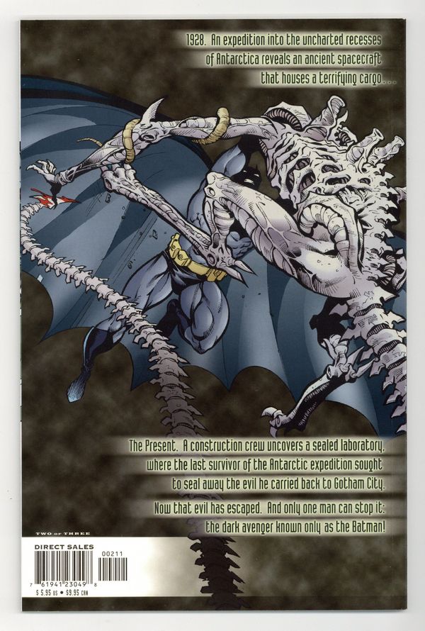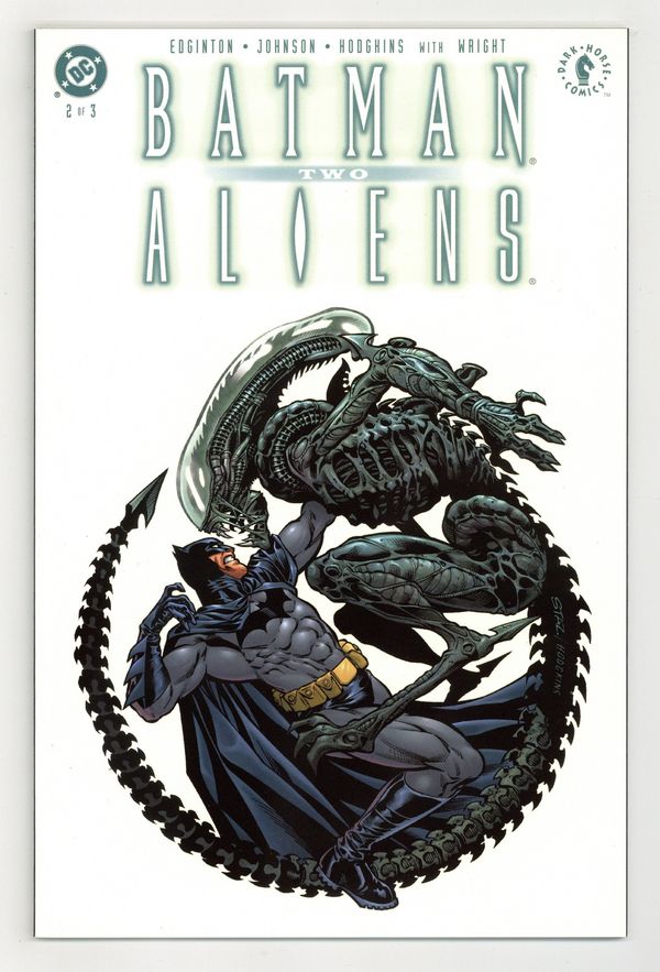 Published Feb 2003 by DC/Dark Horse.$36.00WRITTEN BY IAN EDGINTON; ART AND COVER BY STAZ JOHNSON AND JAMES HODGKINS In stores January 29. Part 2 of a 3-part Prestige Format series! A black-ops government agency has taken over the Aliens case! But there's still at least one very fierce, very hungry Alien on the loose in Gotham City! Can Batman stop it from wreaking havoc in Arkham Asylum? Co-published with Dark Horse Comics. Prestige Format. FC, 48PG (2 OF 3) $5.95 Cover price $5.95.