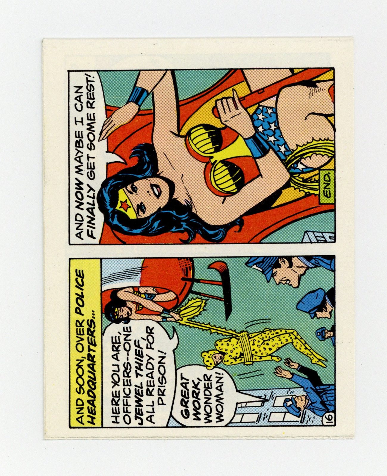 Wonder Woman, "The Cheetah's Jewel Caper!" is a 16-page full color mini comic (4-1/2 x 3-1/2 inches). Published in 1979 as a cereal box giveaway item from Post Cereals.