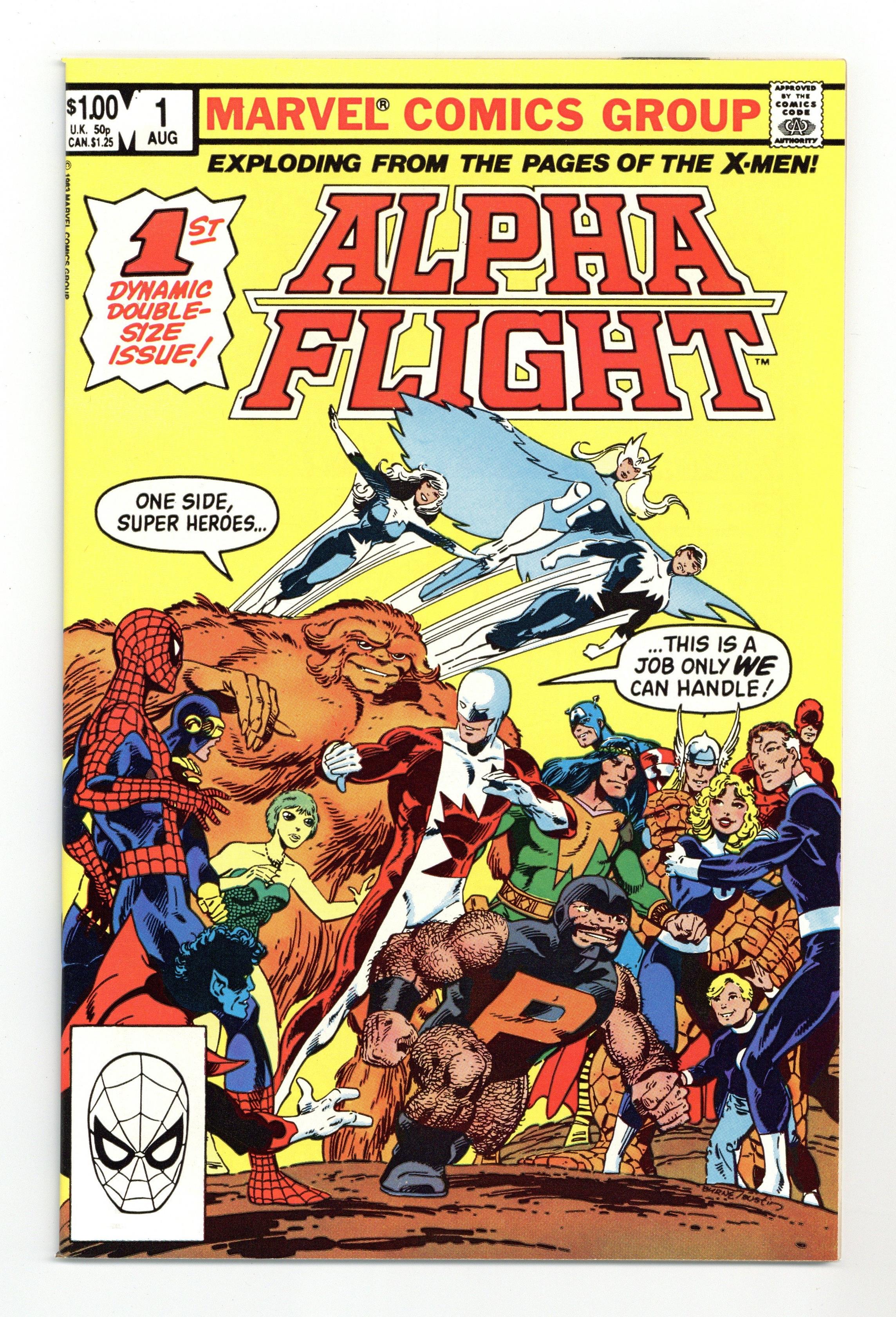 Direct Edition. "Tundra!" Story and art by John Byrne. Exploding from the pages of the X-Men comes Canada's premier super-team - Alpha Flight! The monstrous Sasquatch, the mystical Shaman, the twins, Aurora and Northstar, the divine Snowbird, the tumbling Puck (1st appearance), the aquatic beauty, Marrina (1st appearance), and their leader, Vindicator, must reunite to stop the destructive elemental force known as Tundra. NOTE: Also 1st appearance of Omega Flight (Diamond Lil, Wild Child, Flashback,& Smart Alec). Cover price $1.00.