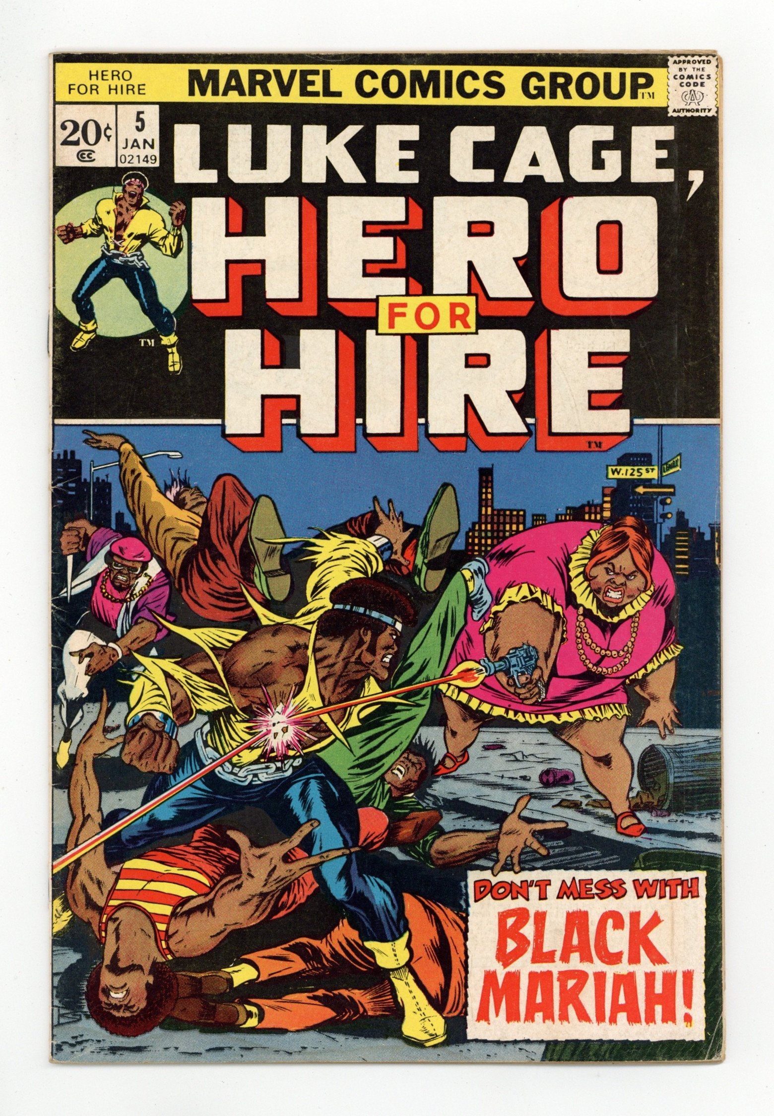 Tags: Marvel Legacy Numbering: Luke Cage (part 5), Luke Cage$18.00"Don't Mess with Black Mariah!" Script by Steve Englehart, pencils by George Tuska, inks by Billy Graham. Martin Lawrence's "Big Momma" has got nothing on the newest crime boss Black Mariah. Luke Cage has his hands full with 800 lbs. of fighting mad woman. Graham cover. Cover price $0.20.