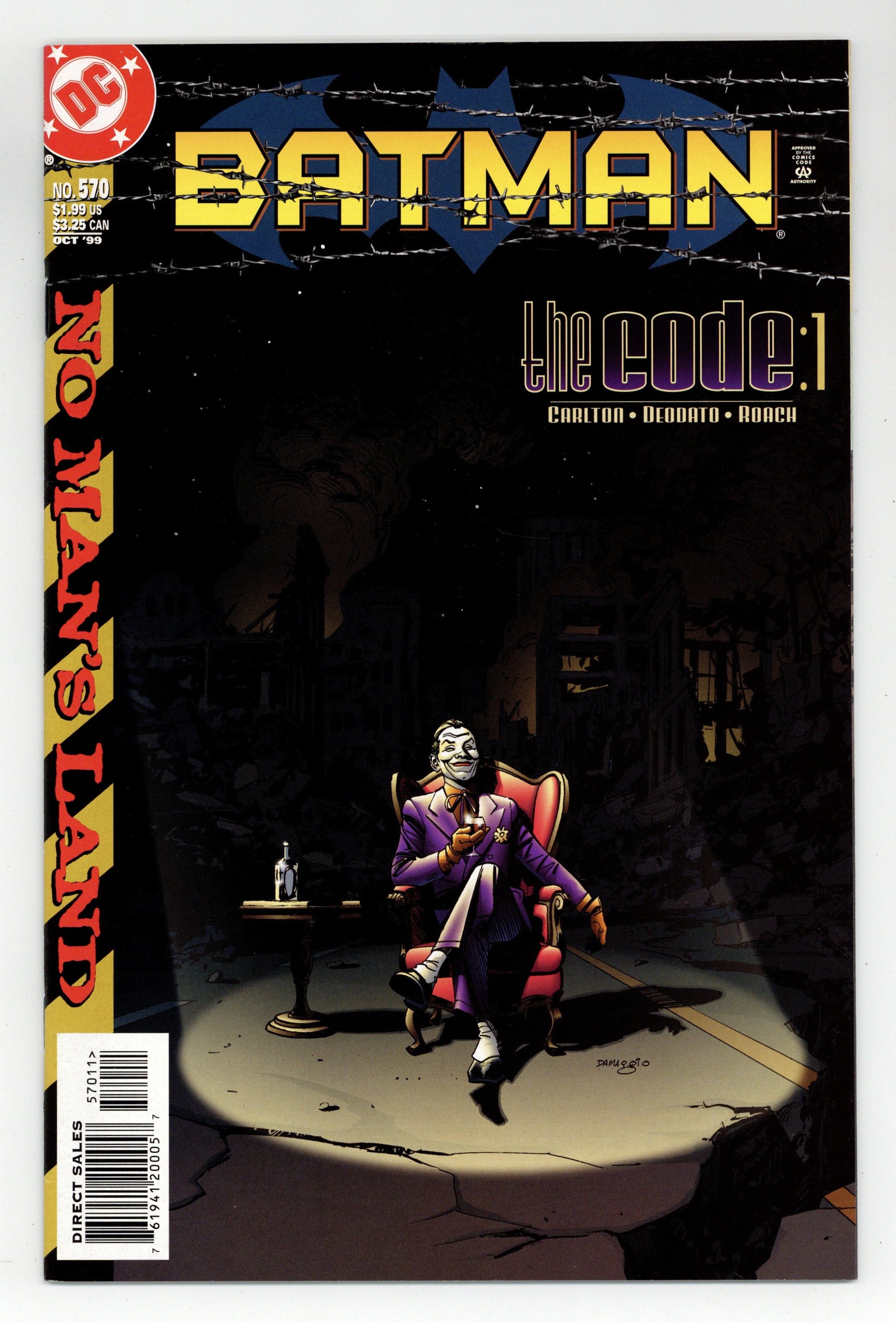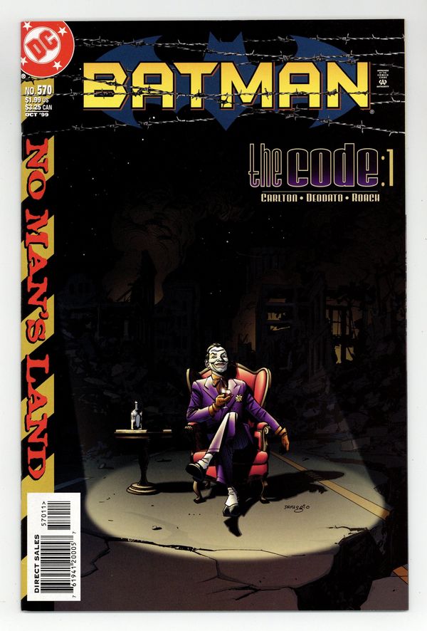Direct Edition. Written by Bronwyn Carlton; art by Mike Deodato and David Roach; cover by Rodolfo Damaggio . Harley Quinn hits the streets of "No Man's Land" in Part 1 of the 2-part "The Code!" Following the events of BATMAN: HARLEY QUINN, Harley returns just as the Joker expands his turf over the broken bodies of two warring gangs. While she uses a philosophy called "The Code" to try to manipulate events to her liking, Joker makes a sweeping move that threatens to tip the balance of power in Gotham and change the face of "No Man's Land" forever. 40 Pages, Full Color. Cover price $1.99.