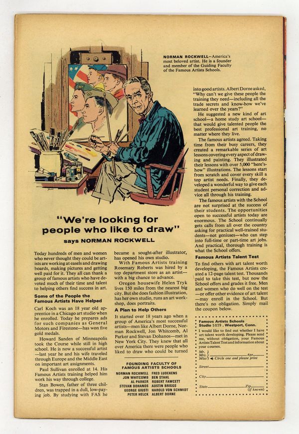 Starts Dec 15 Cover pencils by Don Heck, inks by Frank Giacoia. "This Power Unleashed!", script by Stan Lee, pencils by Don Heck, inks by Frank Giacoia; The Avengers find themselves unable to revive the fallen Goliath; A doctor informs them that he will recover but must never attempt to shrink any further than his present 10-foot size; Goliath storms out in anger; Black Widow is captured by Russians, brainwashed and sent to destroy the Avengers; She enlists the help of the Swordsman and Power Man; The Avengers are all captured with the exception of Goliath and the Wasp; They free the captive Avengers, and after a brief battle, the Black Widow, the Swordsman and Power Man all escape. Avengers roll call: Captain America, Hawkeye, Goliath, the Wasp, Quicksilver, and the Scarlet Witch. Letter to the editor from comics writer Mike Friedrich. Reprinted in Marvel Triple Action # 23. 36 pgs., full color. $0.12. Cover price $0.12.