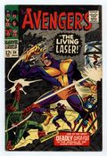 Tags: Marvel Legacy Numbering: Avengers (part 34), Avengers$50.00First appearance of the Living Laser in "The Living Laser!" Part 1 of 2. Script by Stan Lee. Art by Don Heck. Cover by Don Heck. A new super-villain bursts on the scene! And he's using -- light amplification by stimulated emission of radiation -- as his primary weapon! After robbing a bank, Arthur Parks (aka the Living Laser) has a chance encounter with Janet van Dyne...and he is immediately smitten by her beauty. But the Living Laser's attraction to the Wasp is twisted -- and he attacks Goliath in order to eliminate him from Jan's life! Hank Pym defeats the Living Laser, and itseems like the episode is over. However Arthur Parks escapes and begins a new crime spree across the city! So now the Avengers have to find and defeat the Living Laser again! Cameo appearance by Dr. Bill Foster. Avengers Lineup: Captain America, Goliath, Hawkeye, and the Wasp. (Notes: This story completes Stan Lee's excellent scripting run on the Avengers title -- which began with issue #1 in 1963. This story was reprinted in Marvel Triple Action #26.) 36 pages. Cover price $0.12.