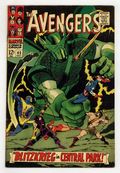 "Blitzkrieg in Central Park!" Script by Roy Thomas. Pencils by Don Heck. Inks by Vince Colletta. Cover by John Buscema and Vince Colletta. Following Earth's Mightiest Heroes' victory in Avengers Annual #1, the city hosts "Avengers Day" in Central Park! And what a grand celebration it is as nine avengers gather to receive accolades from the crowd. However, there is one person in the crowd -- actually one android in the crowd -- who has not come to praise the Avengers, but to bury them! When the moment is right, the Super-Adaptoid attacks! A.I.M.'s finest creation -- with his array of mimicked powers -- keeps the assembled avengers off-balance. But the adaptoid's obsession with killing the star-spangled avenger provides the heroes with an opportunity to regroup! And Pietro comes up with an idea! Will Quicksilver's quick plan short-circuit the Super-Adaptoid? Avengers Lineup: Captain America, Goliath, Hawkeye, Hercules, Iron Man, Quicksilver, Scarlet Witch, Thor, and the Wasp. (Notes: The Super-Adaptoid returns in Iron Man (1st series) #49. This story was reprinted in Marvel Triple Action #37.) 36 pages. Cover price $0.12.