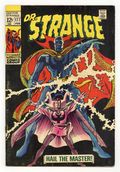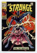 Dr. Strange gets a new costume that fans didn't care for in 1969--but it looks pretty cool to us! Cover pencils by Gene Colan, inks by Tom Palmer. The Cult and the Curse, script by Roy Thomas, pencils by Gene Colan, inks by Tom Palmer; Asmodeus assumes form of Dr. Strange, to fool Ancient One; Strange takes on new masked costume. Asmodeus recites the Spell of Fire and Ice with dying breath, releasing Ymir the frost giant and Surtur the fire demon. 36 pgs. $0.12. Cover price $0.12.