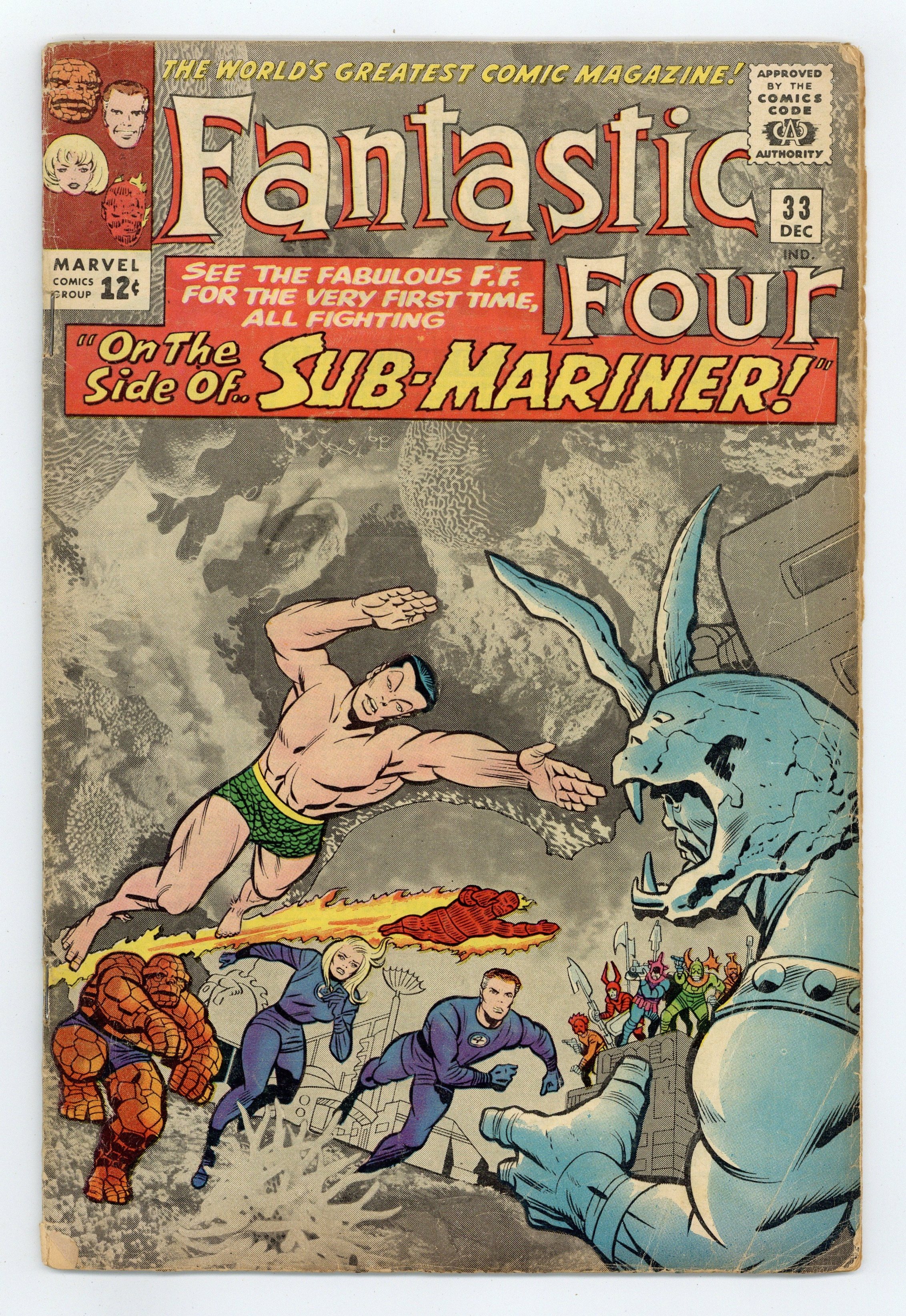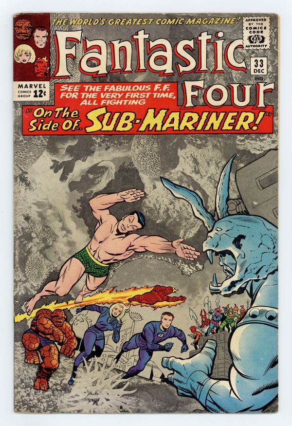 Cover pencils by Jack Kirby, inks by Chic Stone. Side-by-Side with Sub-Mariner!, script by Stan Lee, pencils by Jack Kirby, inks by Chic Stone; Lady Dorma asks the FF for their help in protecting Atlantis from Attuma, a rogue Atlantian Warrior who is trying to usurp Namor's rule. Letter to the editor from comics writer Don McGregor. 36 pgs. $0.12. Cover price $0.12.