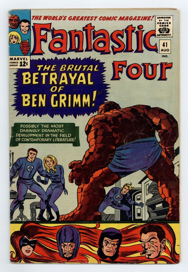 Ends Jan 26 8:09 PM CST Bid History 3 bids Current Bid $11 Your Secret Max Bid If you'd like to bid, please log in or register. Cover pencils by Jack Kirby, inks by Frank Giacoia. The Brutal Betrayal of Ben Grimm!, script by Stan Lee, pencils by Jack Kirby, inks by Vince Colletta; The Frightful Four kidnap the Thing and brainwash him into aiding them against the rest of the FF. 36 pgs. $0.12. Cover price $0.12.