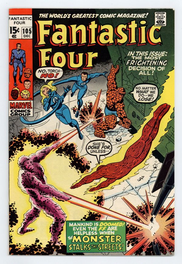 Tags: Fantastic Four$16.75"The Monster in the Streets!" Script by Stan Lee. Pencils by John Romita. Inks by John Verpoorten. Cover by John Romita and John Verpoorten. While enjoying an afternoon walk through Manhattan, Crystal collapses in the street! The Human Torch rushes her to the Baxter Building, so Reed can diagnose her condition. Unfortunately, the news is not good for the Inhumans' elemental and the youngest member of the FF. Earth's pollution is breaking down Crystal's immune system. She must return to the Hidden Land immediately. It's a heartbreaking farewell for Johnny and Crystal. Meanwhile, a bizarre energy creature is roaming the streets of New York City! The Invisible Girl encounters the powerful being first and then summons her fantastic teammates to the scene! Cameo appearance by Lockjaw. (Note: Crystal appears next in Fantastic Four 117.) 36 pages Cover price $0.15.