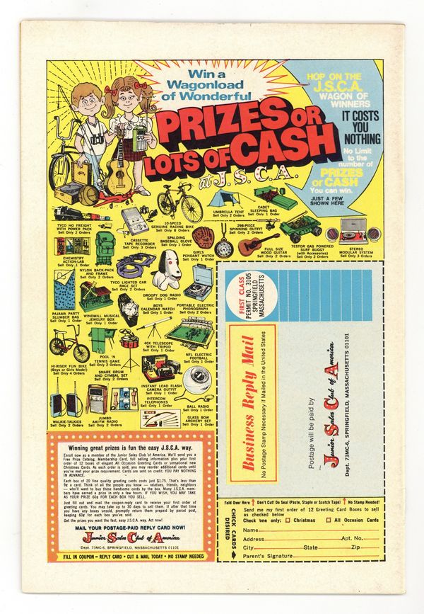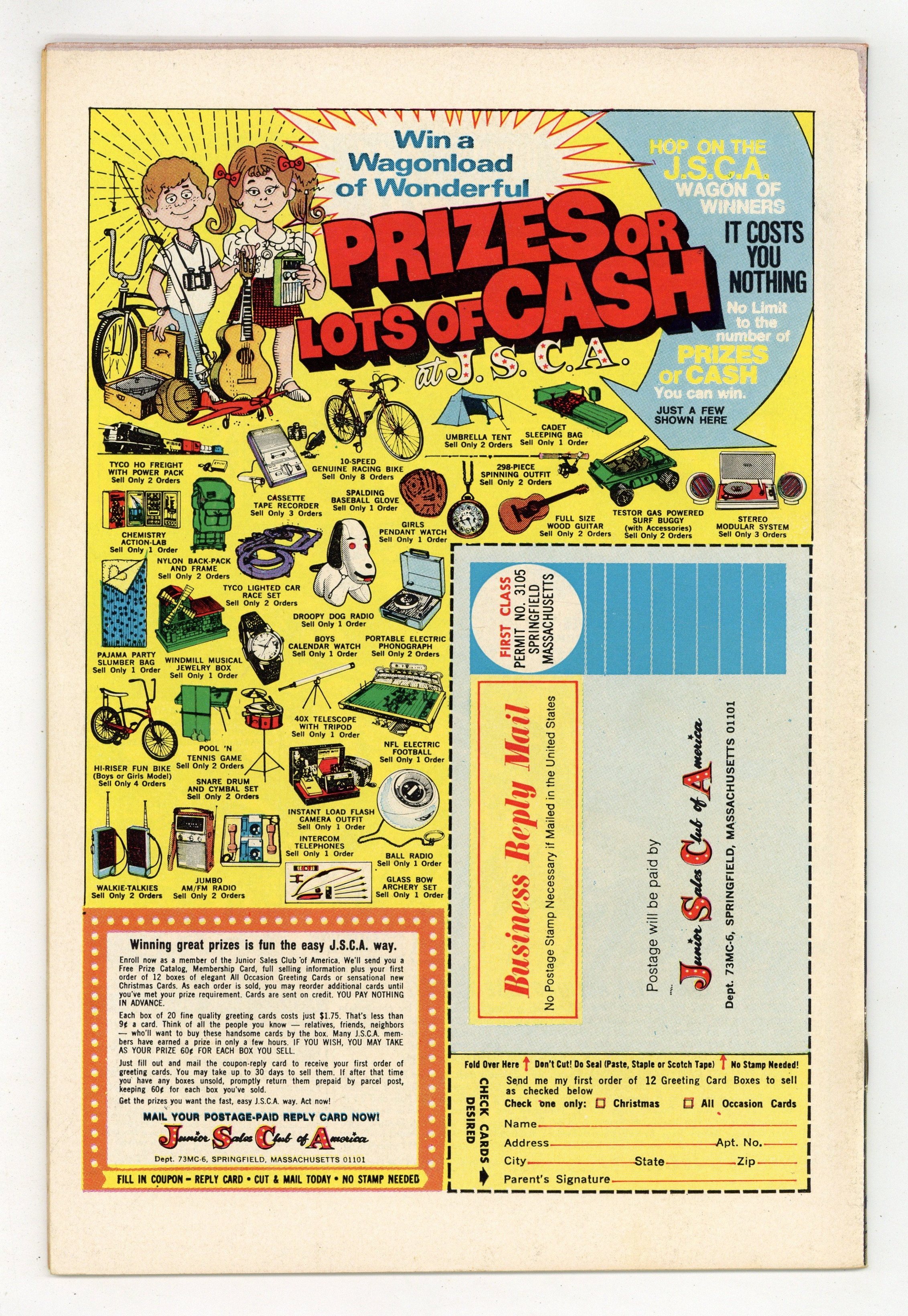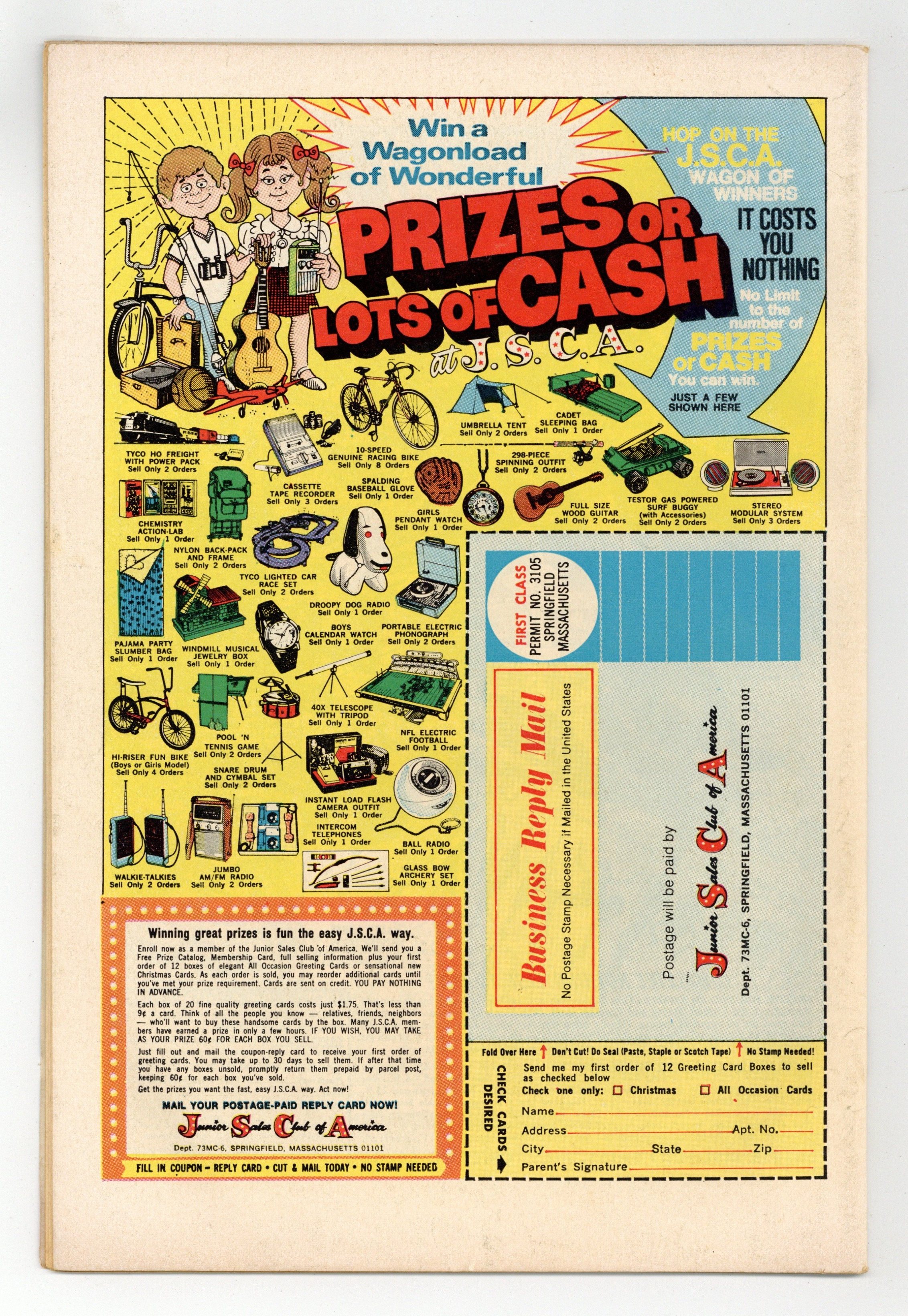 Starts Dec 8 First appearance of the Man-Wolf (aka John Jameson) in "The Mark of the Man-Wolf" Part 1 of 2. Script by Gerry Conway. Pencils by Gil Kane. Inks by John Romita and Tony Mortellaro (backgrounds). Cover by John Romita. While web-swinging through the city, Spider-Man stops to look at the local newspapers. He becomes angry when the Daily Bugle is the only newspaper calling him a murderer -- in connection with the death of Norman Osborn! The livid wall-crawler rushes to JJJ's apartment, but someone else gets their first: the Man-Wolf! Oh my! As shown on the terrific cover, Spider-Man battles the Man-Wolf to save J. Jonah Jameson! First appearance of Kristine Saunders. Cameo appearances by Mary Jane Watson, Flash Thompson, and Joe Robertson. (Notes: In the letters page, the web-slinger's fans react to Gwen Stacy's death. This story was reprinted in Marvel Tales 101.) 36 pages. Cover price $0.20.