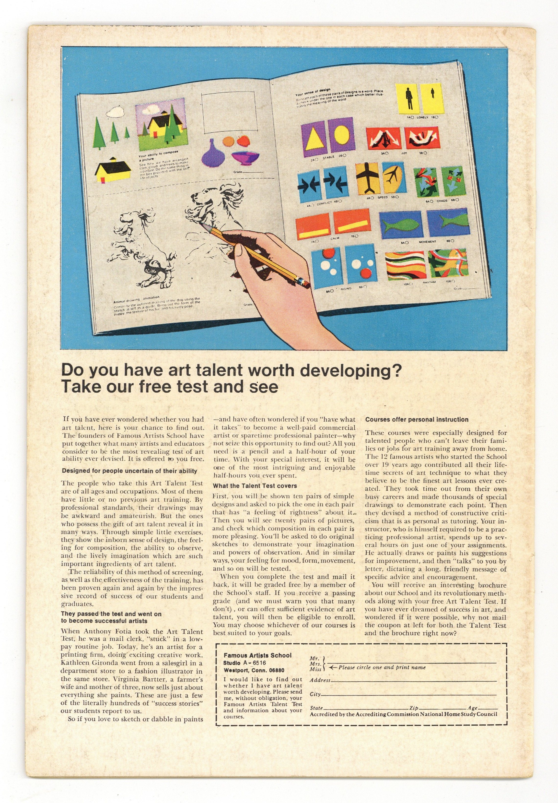 Starts Dec 15 "Trap for a Terrorist!" Script by Stan Lee. Pencils by John Romita. Inks by Sal Buscema. Cover by John Romita and Sal Buscema. As a favor to the Daily Bugle's freelance photographer, Joe Robertson sends Peter Parker to England for a special assignment (and also to visit Gwen Stacy.) Aunt May's nephew is overjoyed about his business trip and quickly hops on an airplane bound for London. However also on the flight is a high-ranking American diplomat -- who is abducted by terrorists once the place lands at Heathrow Airport! Fortunately, Peter brought his familiar red and blue suit across the pond! And the Amazing Spider-Man swings into action from the Tower Bridge to the Big Ben Clock -- to save the American delegate! But will the web-slinger's much-publicized appearance in London derail Peter's plan to visit Gwen? Cameo appearances by J. Jonah Jameson, Aunt May, Anna Watson, Mary Jane Watson, Harry Osborn, Arthur Stacy, and Nancy Stacy. (Notes: This story was reprinted in Marvel Tales #76. The letters page includes a statement of ownership: average print run 596,102; average paid circulation 322,195.) 36 pages. Cover price $0.15.