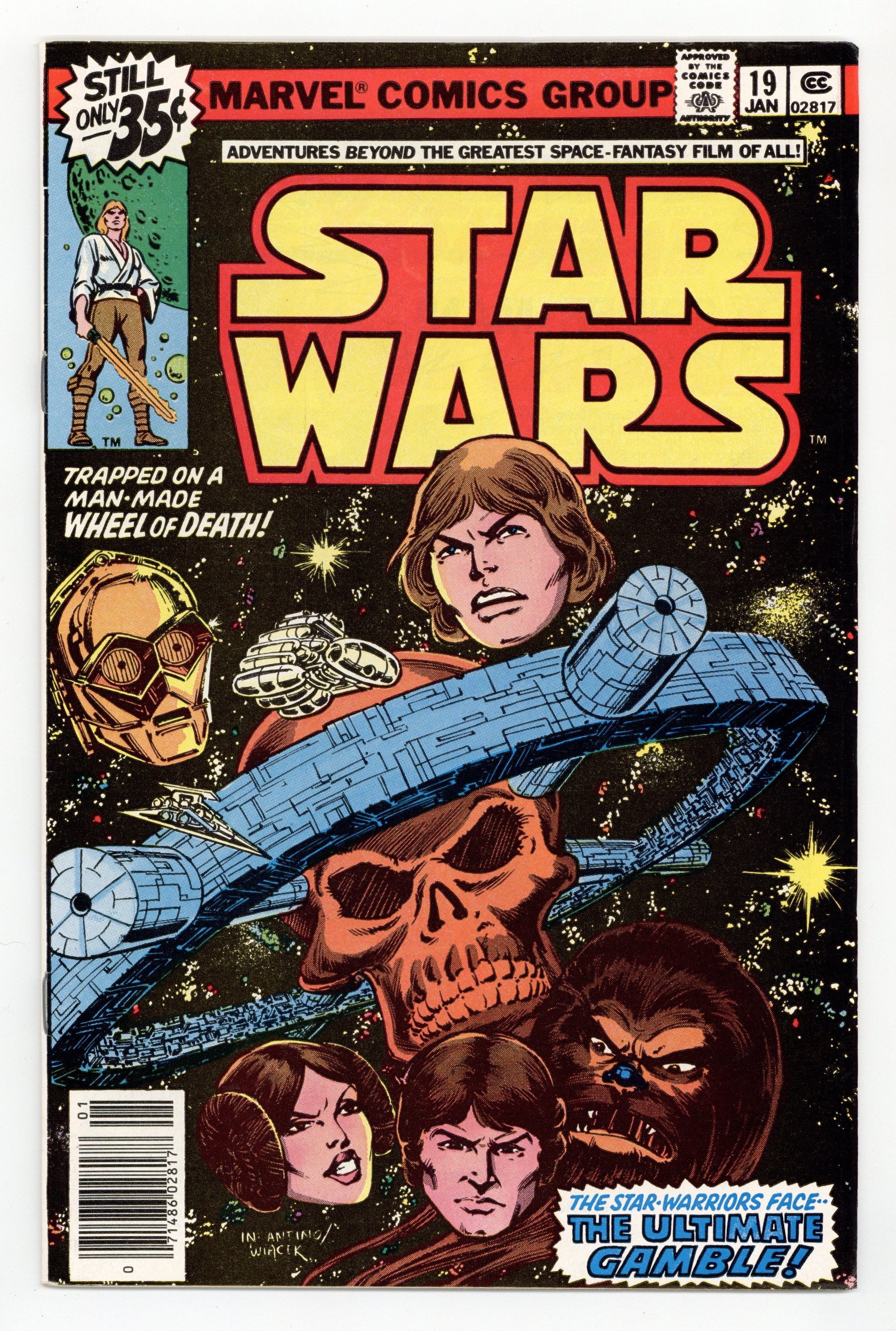"The Hunter!" Written by Archie Goodwin. Art by Carmine Infantino and Bob Wiacek. Continuing the saga began in the movie by George Lucas and released by Twentieth Century Fox, this tale finds Luke, Leia, Han, Chewie, and the droids within striking distance of the evil Galactic Empire. Is this the end of our heroes, or can they somehow find a way to escape? Cover price $0.35.