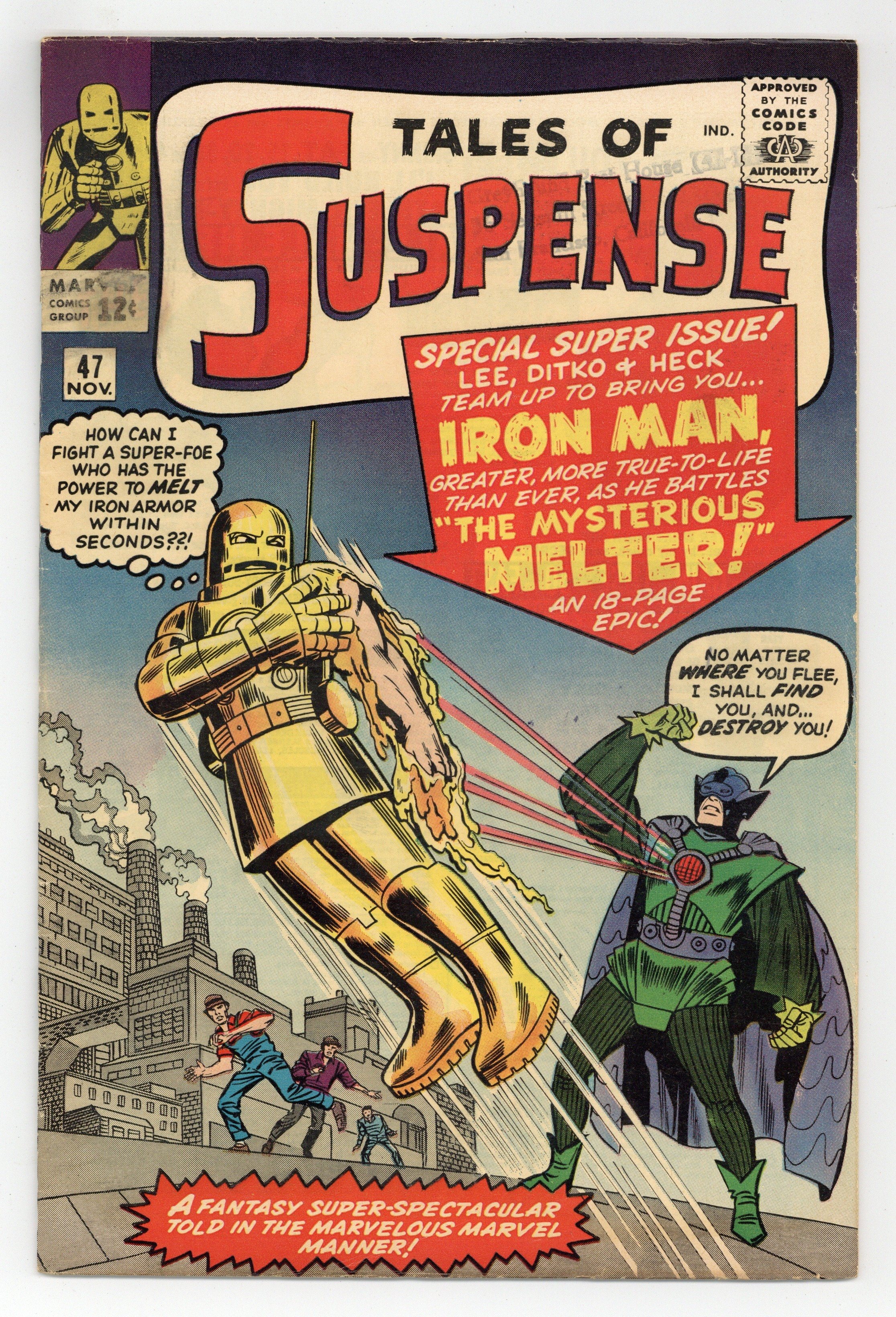 Starts Feb 2 Cover pencils by Jack Kirby, inks by George Roussos. "Iron Man Battles the Melter!", script by Stan Lee, pencils by Steve Ditko, inks by Don Heck; A former competitor of Tony Stark becomes the Melter and sabotages one of his plants. Iron Man tries to defend it but must flee before the Melter; He defeats him by constructing an aluminum suit that he cannot melt. "The Green Man" text story. "Shock!", script by Stan Lee (plot) and Larry Lieber (script), pencils by Larry Lieber, inks by George Roussos (as G. Bell); A radar operator turns off Earth's defenses when alien raiders offer him the most beautiful woman in the universe. 36 pages, full color. Cover price $0.12.