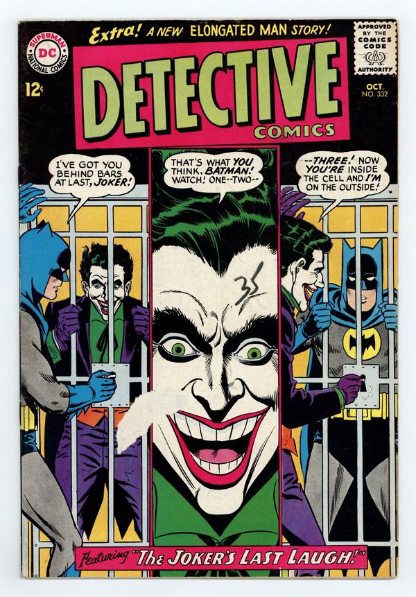 Written by John Broome. Art by Sheldon Moldoff (ghost for Bob Kane) and Joe Giella. Cover by Carmine Infantino and Joe Giella. The Joker's Last Laugh!; The Joker commits crimes in which bad jokes make people laugh uncontrollably, then he robs them; Joker sprays Batman and Robin with a form of "loco weed" that makes them laugh. Written by Gardner Fox. Art by Carmine Infantino and Sid Greene. The Elongated Man's Other-World Wife! starring Ralph Elongated Man Dibny and his wife, Sue Dibny. Smoking is for Squares! public service announcement by Jack Schiff, art by Sheldon Moldoff. Scientific Crime Detectives article. Letter to the editor from comics writer Mike Friedrich. Rocky and Bullwinkle star in a one-page Cheerios ad. 36 pages, full color. $0.12. Cover price $0.12.