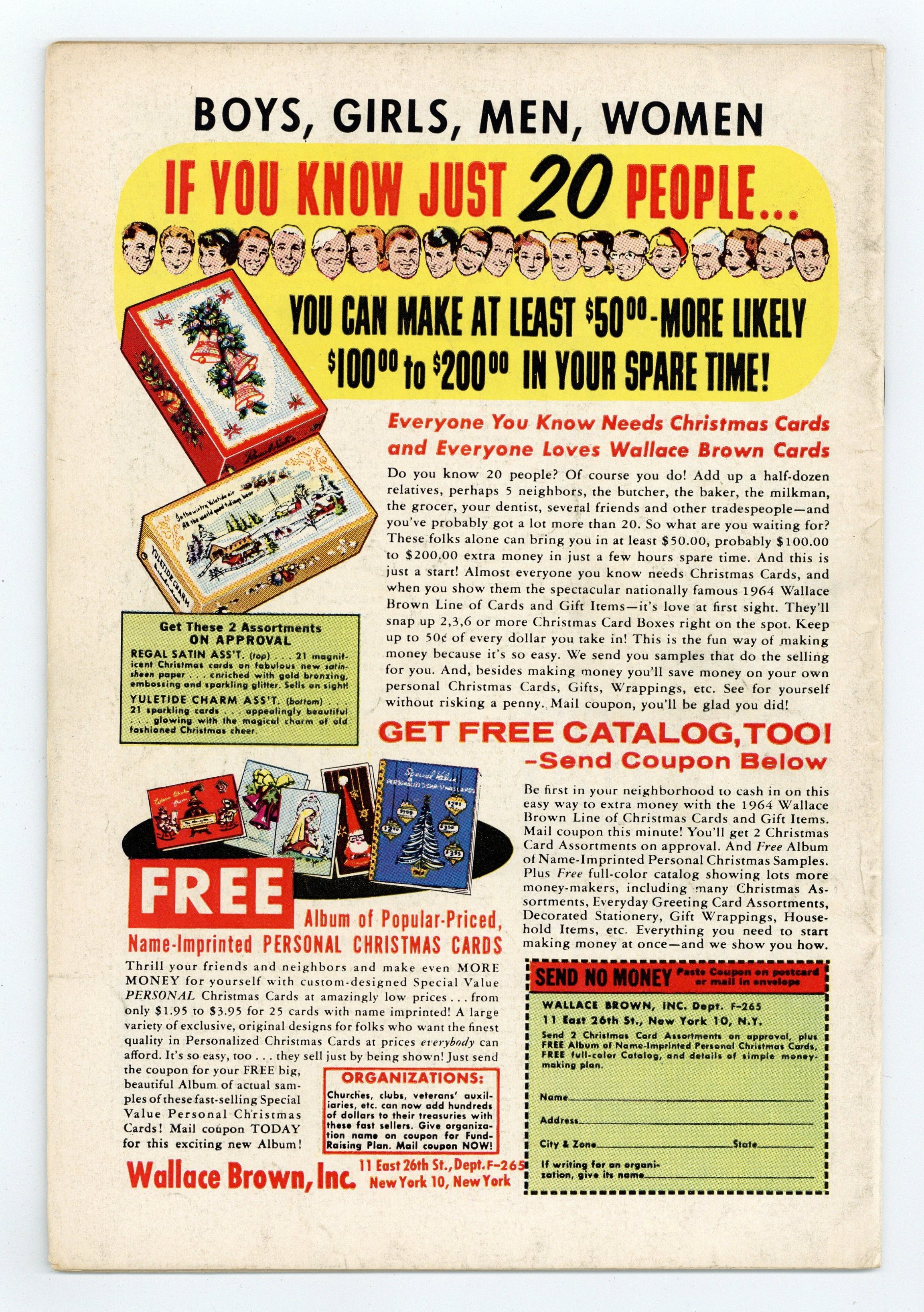 $72.00Written by John Broome. Art by Sheldon Moldoff (ghost for Bob Kane) and Joe Giella. Cover by Carmine Infantino and Joe Giella. The Joker's Last Laugh!; The Joker commits crimes in which bad jokes make people laugh uncontrollably, then he robs them; Joker sprays Batman and Robin with a form of "loco weed" that makes them laugh. Written by Gardner Fox. Art by Carmine Infantino and Sid Greene. The Elongated Man's Other-World Wife! starring Ralph Elongated Man Dibny and his wife, Sue Dibny. Smoking is for Squares! public service announcement by Jack Schiff, art by Sheldon Moldoff. Scientific Crime Detectives article. Letter to the editor from comics writer Mike Friedrich. Rocky and Bullwinkle star in a one-page Cheerios ad. 36 pages, full color. $0.12. Cover price $0.12.