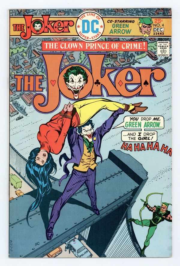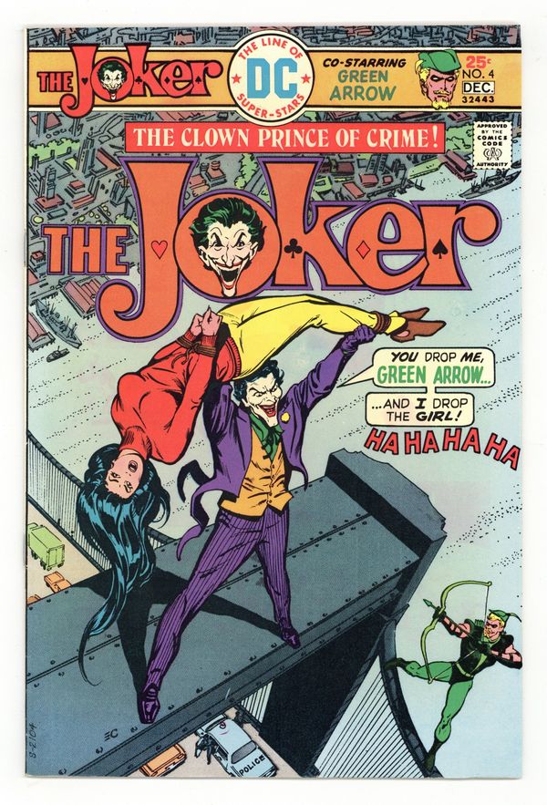 Cover by Ernie Chan. Featuring: 18 page Joker story "A Gold Star for the Joker." Starring the Joker, Green Arrow [Oliver Queen], Black Canary [Dinah Lance] and Hector (Joker's Henchman). In this tale, the Joker kidnaps Dinah Lance and battles Green Arrow atop the Star City bridge. Written by Elliot S! Maggin, with art by Jose Luis Garcia-Lopez and Vince Colletta. Cover price $0.25.