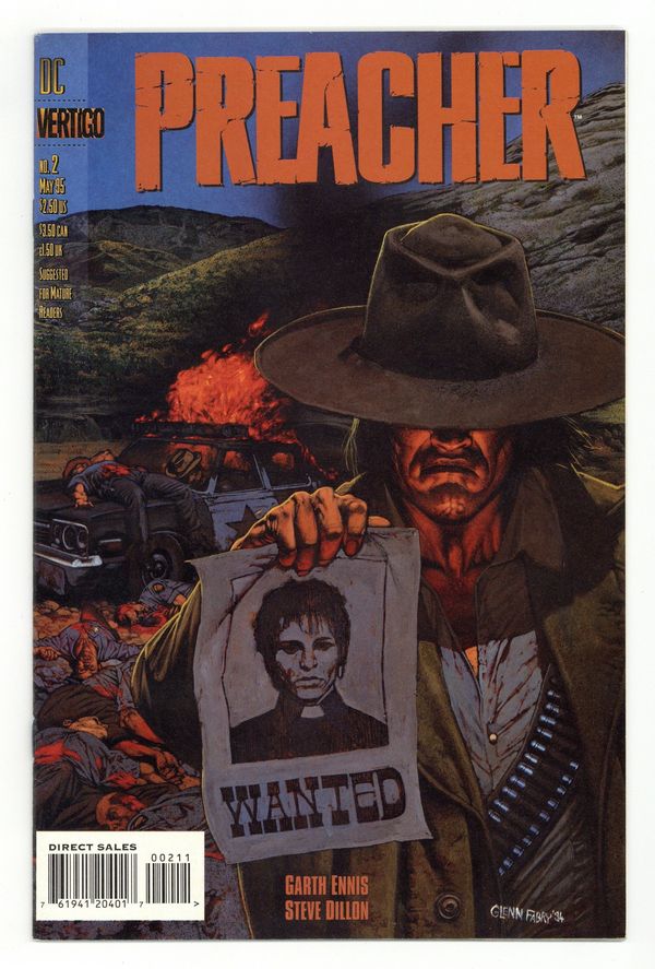 Published May 1995 by DC/Vertigo.$35.00Painted cover by Glenn Fabry. And Hell Followed With Him, script by Garth Ennis, art by Steve Dillon; Sheriff Root faces the Saint of Killers. 36 pgs. $2.50. Cover price $2.50.