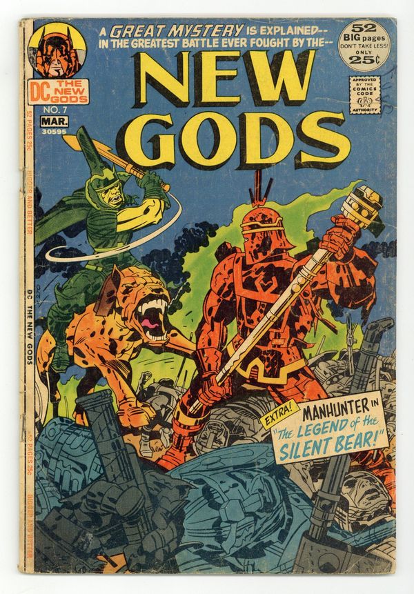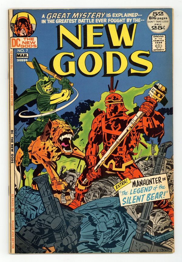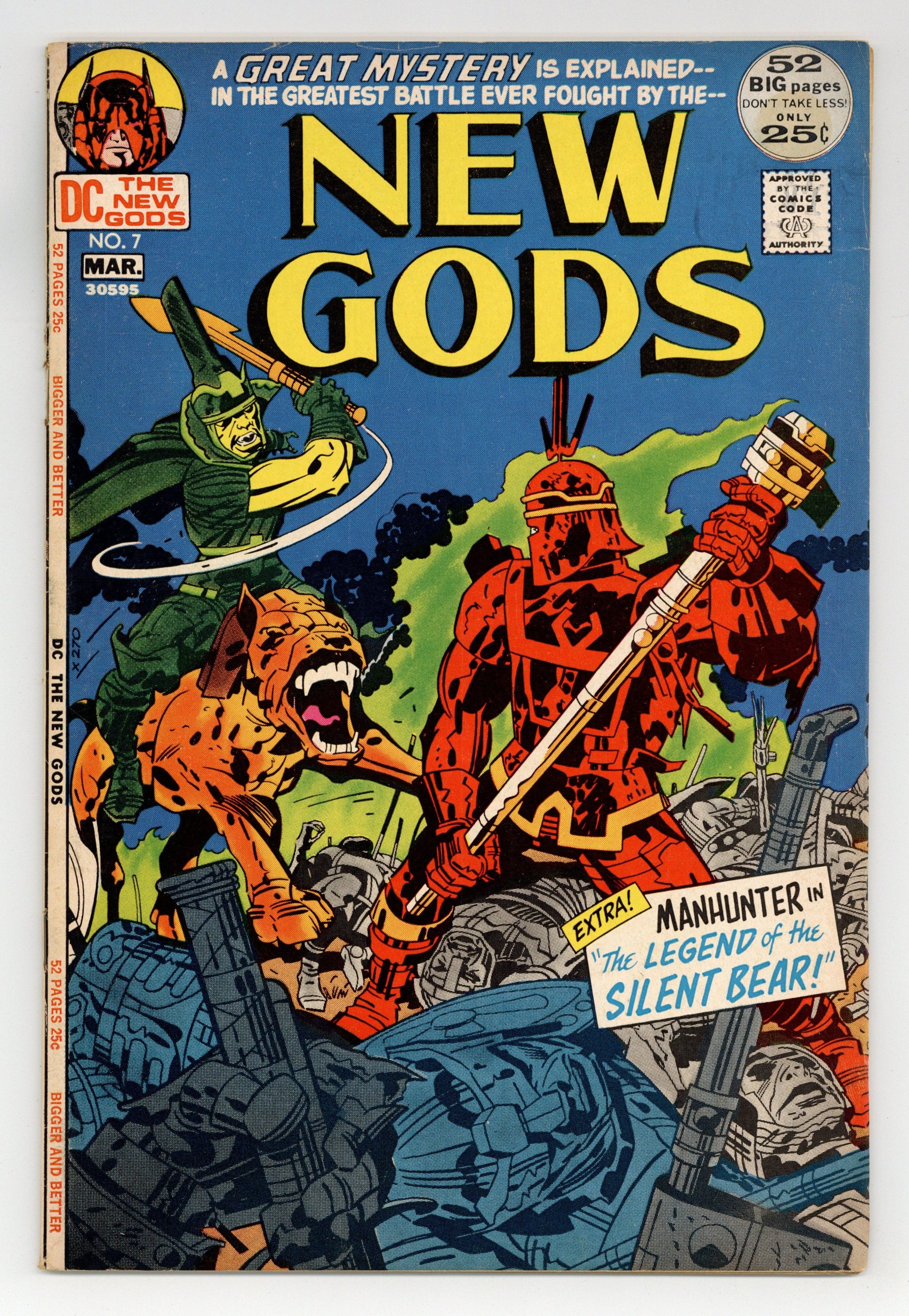 Cover pencils by Jack Kirby, inks by Mike Royer. The Pact!, script and pencils by Jack Kirby, inks by Mike Royer; The history of the war between New Genesis and Apokolips is told, and the pact made between Izaya and Darkseid that brought a temporary peace between the two. Vykin the Black!, script and pencils by Jack Kirby, inks by Vince Colletta; Vykin stops a monster in the tunnels under New Genesis. The Legend of the Silent Bear, script and art by Joe Simon and Jack Kirby. A World of Thinking Machines, script and art by Joe Simon and Jack Kirby. 52 pgs. $0.25. Cover price $0.25.
