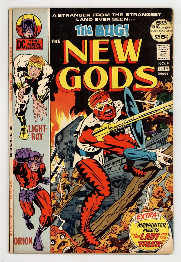 Cover pencils by Jack Kirby, inks by Mike Royer. The Bug!, script and pencils by Jack Kirby, inks by Mike Royer; Forager is given the task of searching out Orion and help him stop Mantis from mobilizing all the bugs into a large army. The Lady and the Tiger, script and art by Joe Simon and Jack Kirby. Letter from comics writer Bob Rozakis. 52 pgs. $0.25. Cover price $0.25.
