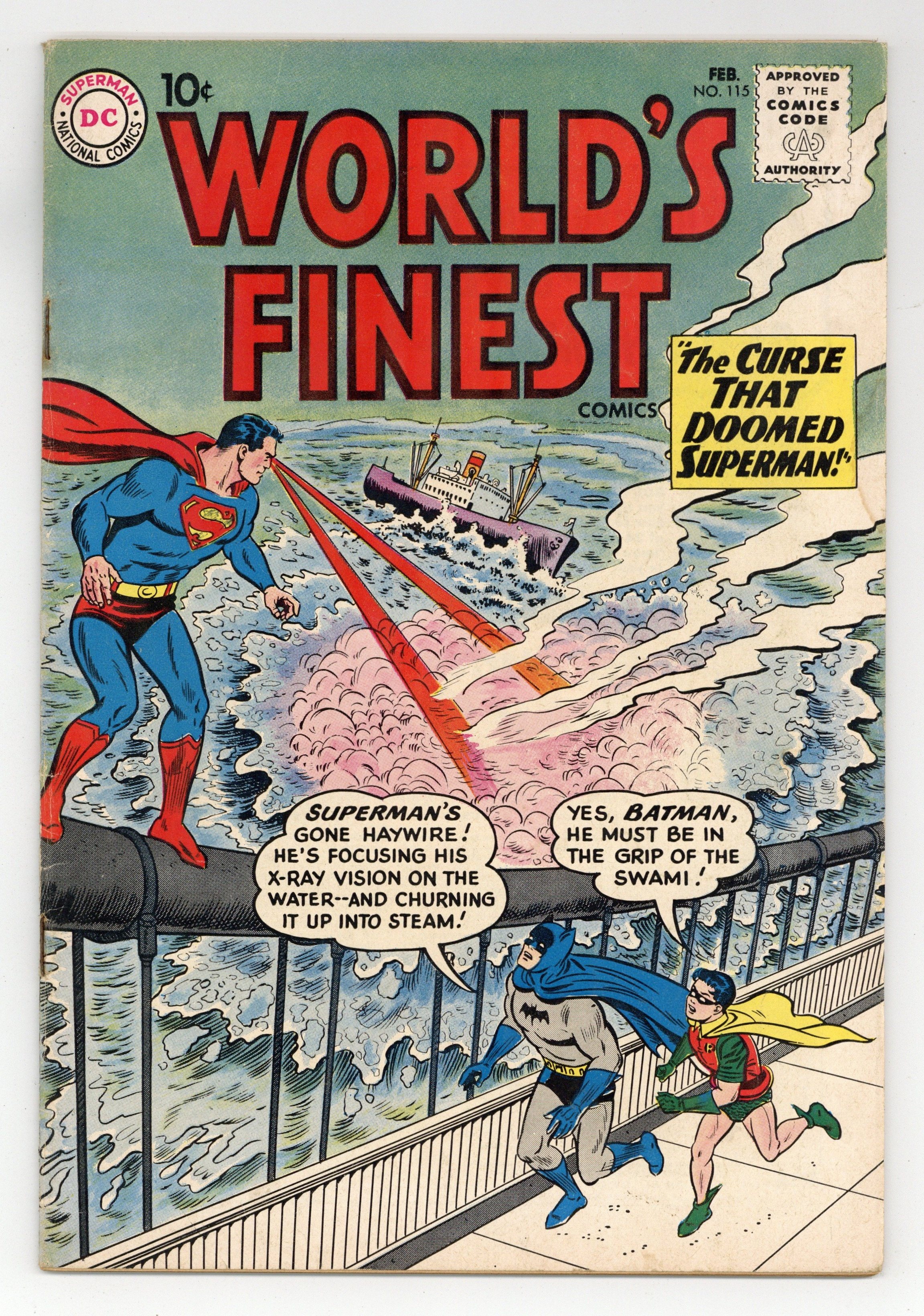 Ends Dec 8 10:12 PM CST Bid History 6 bids Current Bid $30 Your Secret Max Bid If you'd like to bid, please log in or register. Cover pencils by Curt Swan, inks by Sheldon Moldoff. The Curse That Doomed Superman starring Superman and Batman, script by Jerry Coleman, pencils by Dick Sprang, inks by Sheldon Moldoff; A Swami places a curse on Superman that he will follow every good deed with an evil deed. Our American Heritage public service announcement, script by Jack Schiff, art by Bernard Baily. A Trap for Tommy Tomorrow, art by Jim Mooney. Bebe humor page by Henry Boltinoff. The Mighty Arrow Army starring Green Arrow, art by Lee Elias; after Green Arrow and Speedy crash on their world tour in the small country of Luania they must help the local military against an invation by Dictator Bracato. 36 Pages, Full Color. Cover price $0.10.
