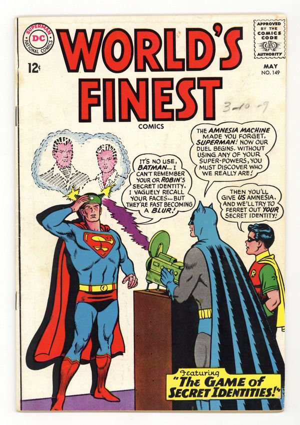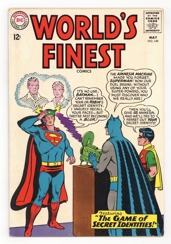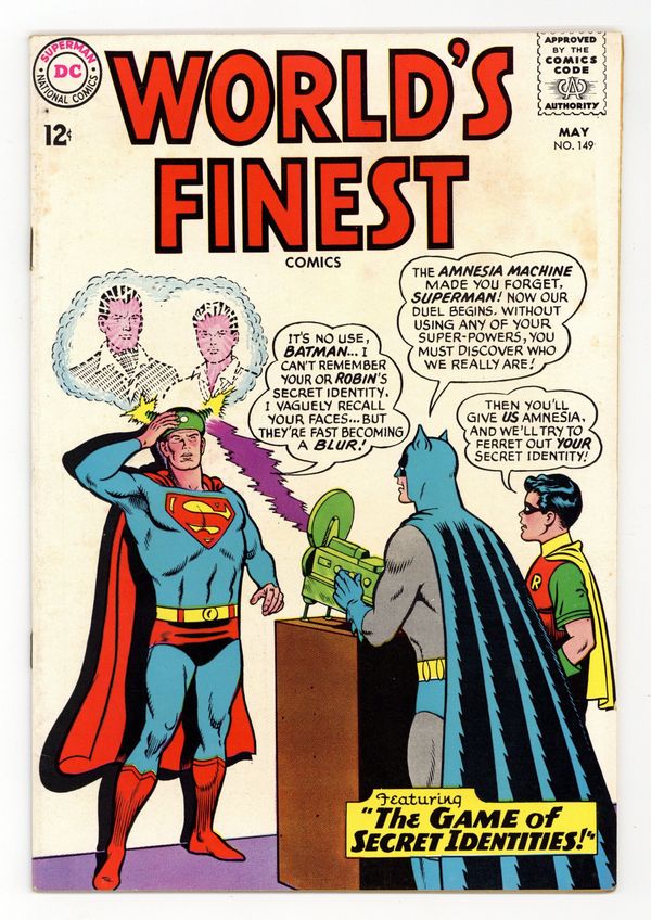 Cover pencils by Curt Swan, inks by George Klein. Part I-The Game of Secret Identities starring Superman and Batman, script by Edmond Hamilton, pencils by Curt Swan, inks by Sheldon Moldoff; Superman and Batman hypnotize each other into forgetting their secret identities and then challenge each other to discover them. Part II--The Super Detective. The Congorilla of Space, script by Robert Bernstein, art by Howard Sherman; Congorilla is transported to another world where he meets an Alien Congorilla much like himself. 36 Pages, Full Color. Cover price $0.12.