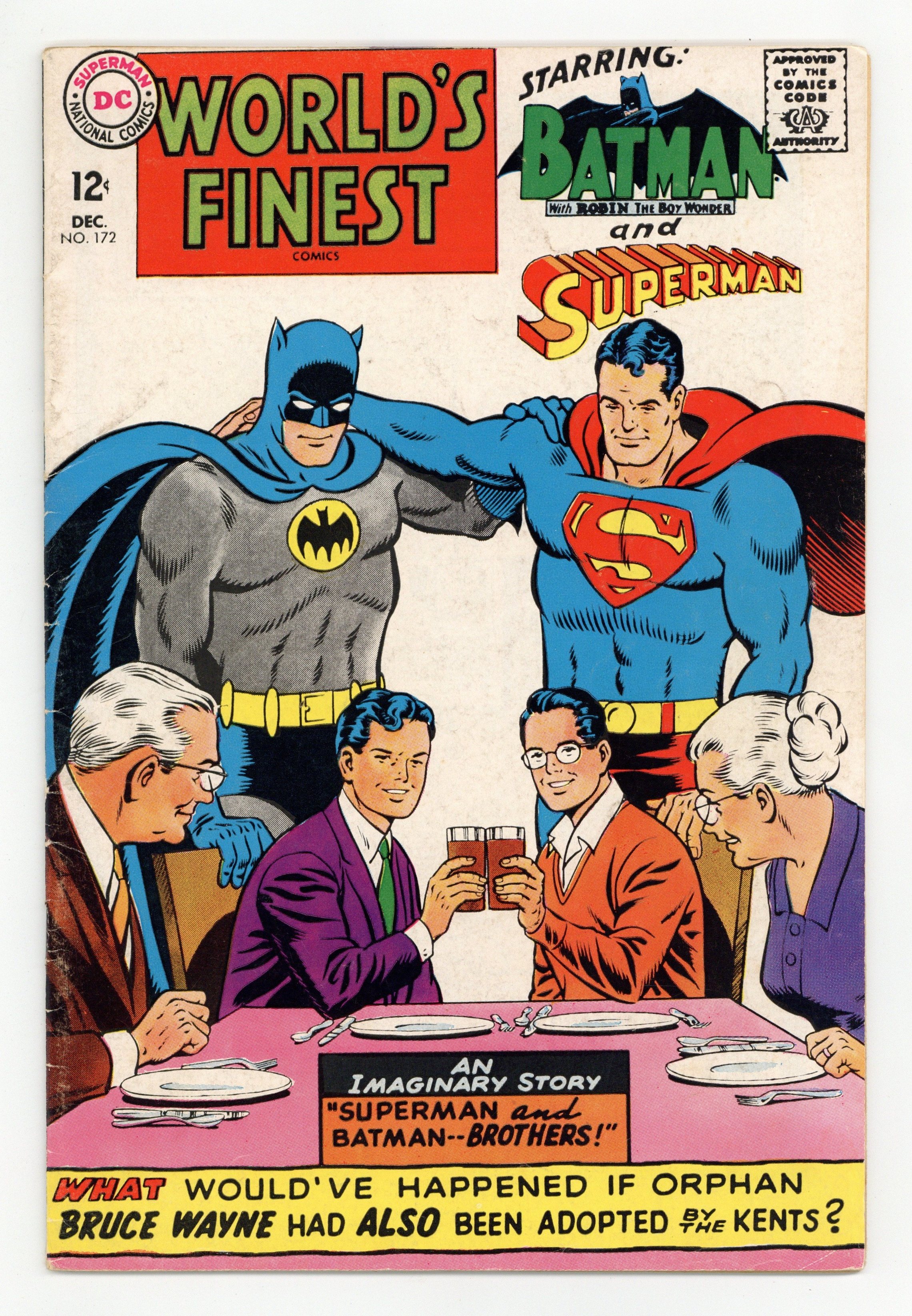 Tags: Superman$18.50Cover pencils by Curt Swan, inks by George Klein. Superman and Batman – Brothers, script by Jim Shooter, pencils by Curt Swan, inks by George Klein; The Kent's adopt Bruce Wayne when his parents are killed. Tank for Beach Green--Editors' Round Table: Our Fighting Forces, script by Bob Haney, art by Joe Kubert. 36 Pages, Full Color. Cover price $0.12.