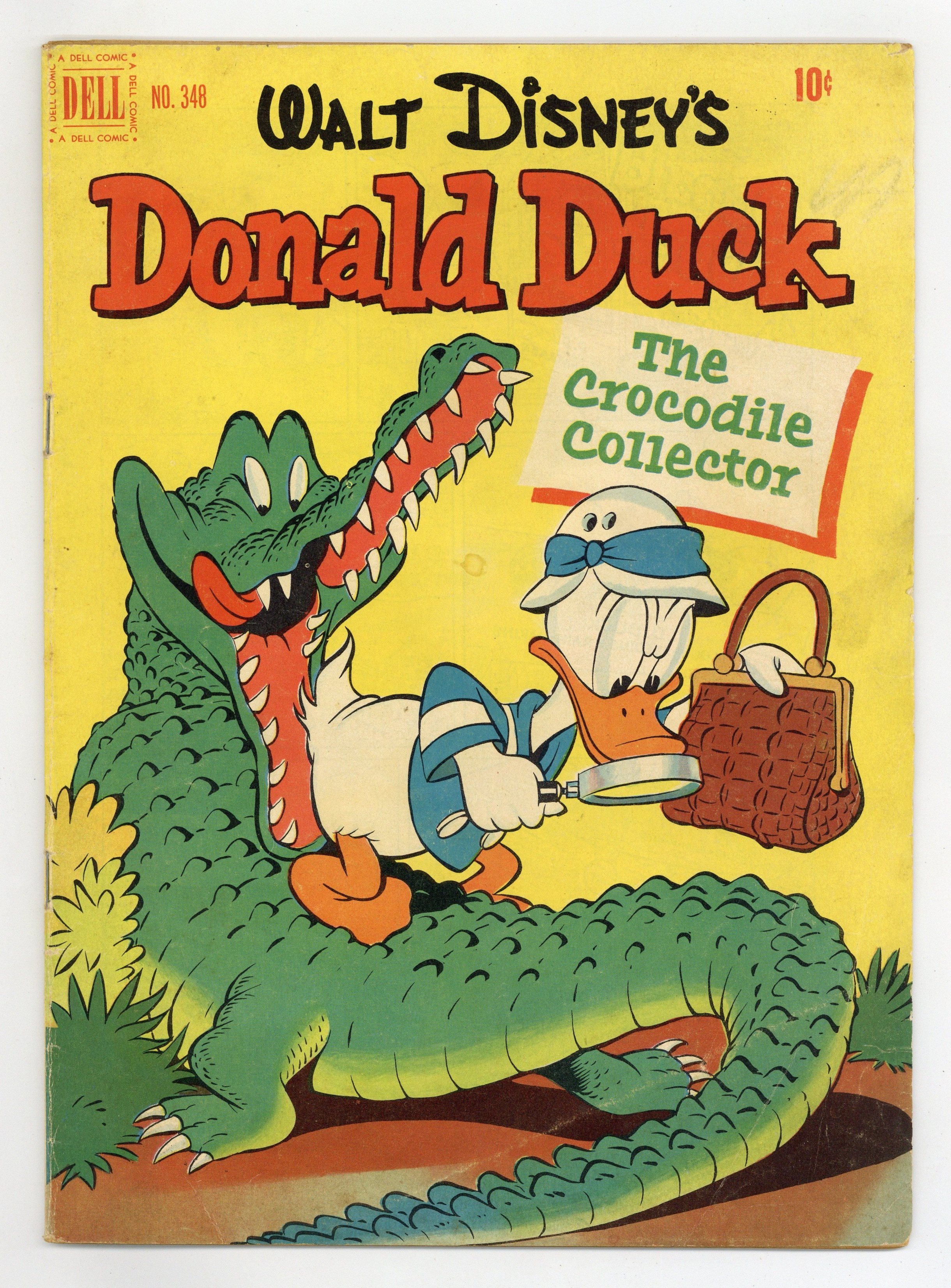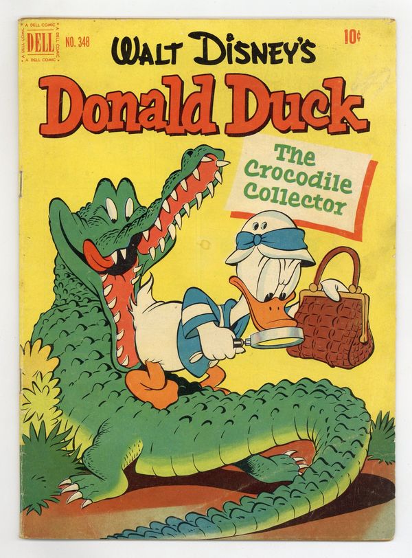 Cover art by Carl Barks. The Crocodile Collector, script by Don Christensen, art by Frank McSavage; When Donald promises Daisy an alligator purse, he and his nephews fly off in search of hides. Seeing Things, art by Frank McSavage; In order to get Donald to take them on vacation, Huey, Dewey and Louie convince him that he's seeing things. Back-cover fishing strip, art by Bill Weaver. 36 pages, full color. Cover price $0.10.