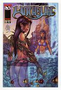 $14.25Cover pencils by Michael Turner, inks by D-Tron; Script by Christina Z. and David Wohl, pencils by Michael Turner, inks by D-Tron; Team Tron [Andy Kim; Jeff De Los Santos; Jose Guillen; Marcia Chen] (Assistants); Julie has gone to bed with Church of Prosperity leader Gavin Taylor who grows violent when she starts teasing him; She is saved by the intervention of the man behind Gavin's bid for power, Kenneth Irons; Ian is trying to kill Jake and his Church of Prosperity informant when Sara shows up to stop him; She is able to defeat him and take back the power of the Witchblade. 36 pgs. $2.50. Cover price $2.95.
