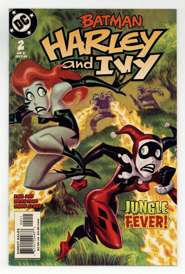 WRITTEN BY PAUL DINI; ART BY BRUCE TIMM AND SHANE GLINES; PAINTED COVER BY TIMM In stores May 26. It's a rumble in the jungle as the miniseries by Paul Dini & Bruce Timm continues! Harley and Ivy hunt down the priceless Zombie Root in lawless Costa Verde, but will the homicidal loggers Slash and Burn bag them first? And can Ivy resist the siren song of the rainforest? FC, 32 PG. (2 OF 3) $2.50 Cover price $2.50.