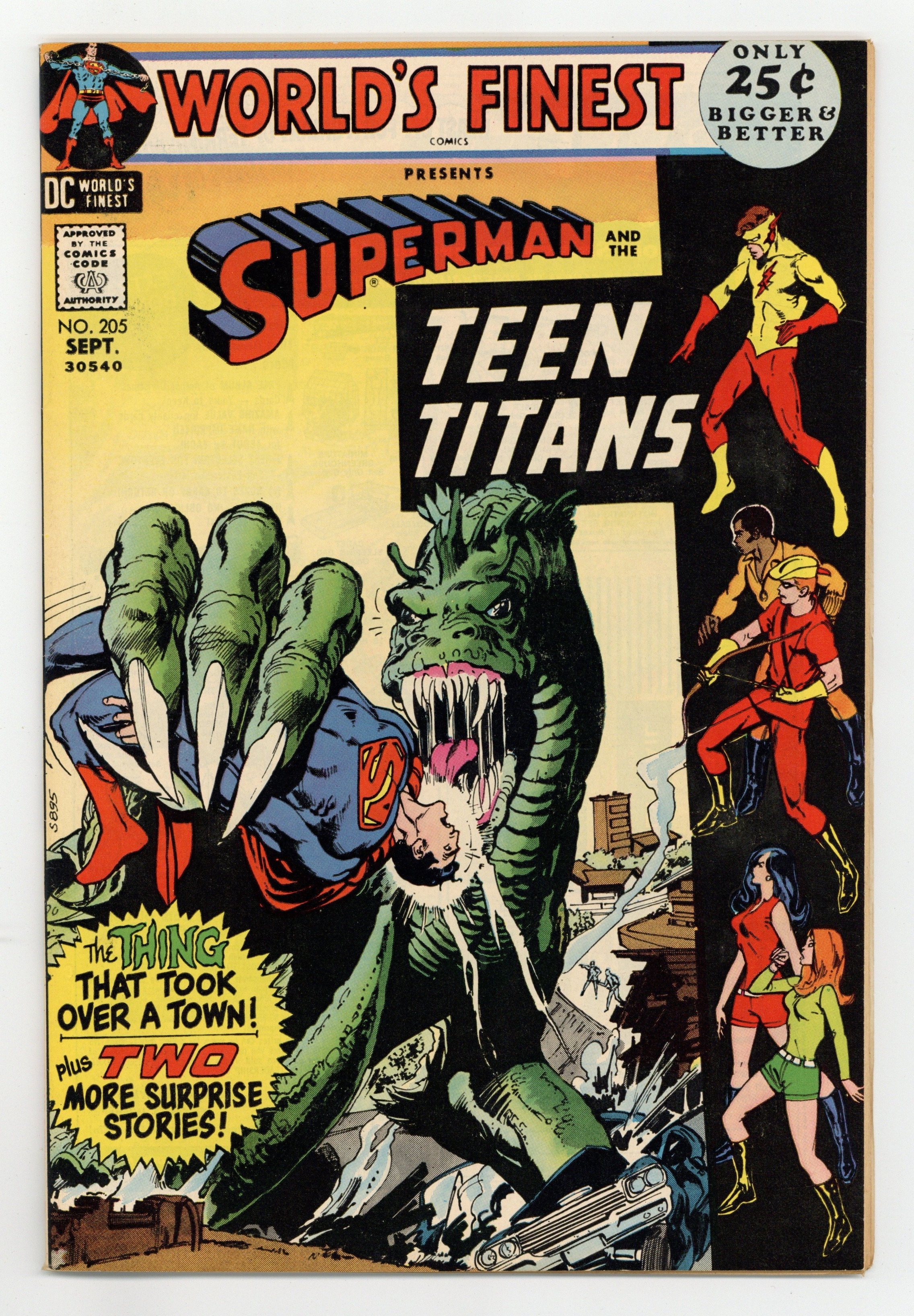 52-page giant. Cover art by Neal Adams. The Computer that Captured a Town! starring Superman and Teen Titans, script by Steve Skeates, pencils by Dick Dillin, inks by Joe Giella; A town is controlled by a computer that makes the Teen Titans act like racists, until Superman gets a subconscious message from Lilith and arrives to stop the computer from controlling the townspeople. Secret of the Last Earth-Man!, script by Gardner Fox, pencils by Mike Sekowsky, inks by Murphy Anderson. The Duel of the Flying Knights! starring The Shining Knight, script by Joe Samachson, art by Frank Frazetta (from Adventure 153; 6 pages). Letters to the editor from comics writers Martin pasko and Bob Rozakis, and cartoonist Jay Zilber. 52 Pages, Full Color. Cover price $0.25.