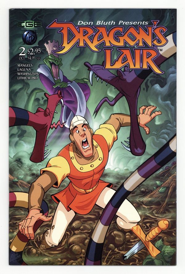 Published Oct 2003 by CrossGen Comics.$23.00Andy Mangels (w), Fabio Laguna (p & i), Tony Washington (c) Based on the hit Don Bluth fantasy video game! On his valiant quest to save his true love, Dirk the Daring has ventured into the Grim Dingy Swamps ? as the Lizard King waits in the shadows! Meanwhile, what does the great dragon Singe have planned for Princess Daphne? FC, 32pg (2 of 6) $2.95 Cover price $2.95.