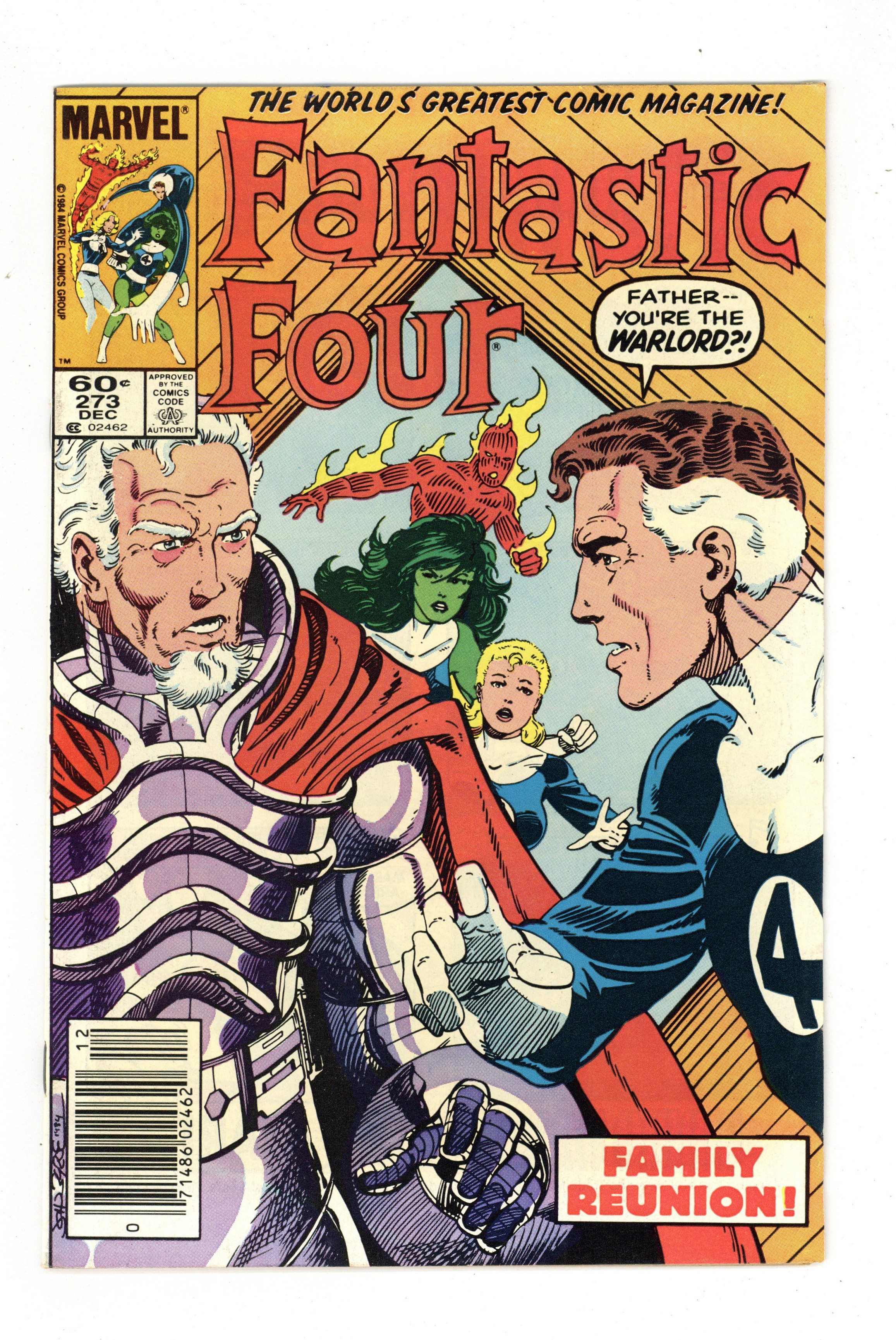 Tags: Fantastic Four$5.30Direct Edition. "Fathers and Others!" Part 3 of 3. Guest-starring Wyatt Wingfoot. Story, art, and cover by John Byrne. While on an alternate Earth Reed runs into the last person he ever expected to see again...his father, Nathaniel Richards (1st full appearance)! 36 pgs. Cover price $0.60.