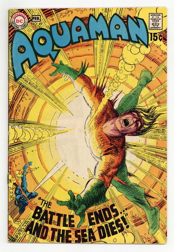 Cover art by Nick Cardy. As the Seas Die, script by Steve Skeates, art by Jim Aparo; oceanographer Dan Davidson summons Aquaman to Alaska after discovering that a chemical is killing the fish; a saboteur is setting off explosives at factories; Ocean Master arrives in Atlantis. Scuba Man humor page by John Costanza. 36 pgs. $0.15. Cover price $0.15.