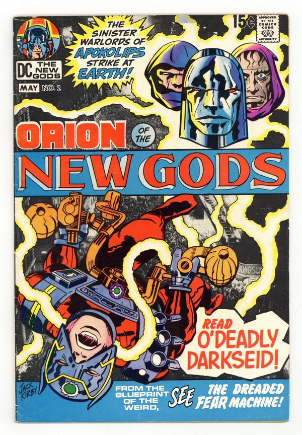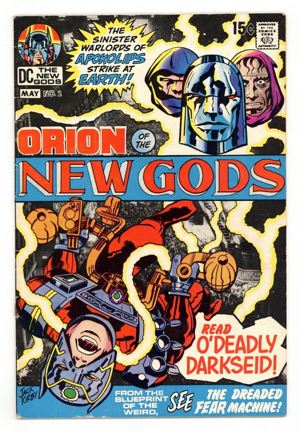 Cover pencils by Jack Kirby, inks by Vince Colletta. O' Deadly Darkseid, script and pencils by Jack Kirby, inks by Vince Colletta; Orion explains the nature of the war against Darkseid to Lanza, Shane, Lincoln, and Lockman. Second full appearance of Darkseid. 36 pgs. $0.15. Cover price $0.15.