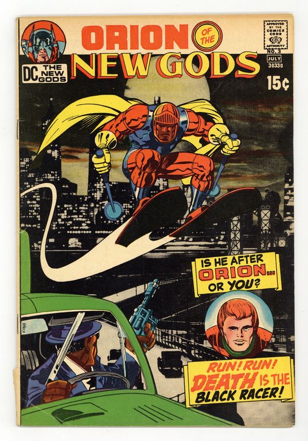 Cover pencils by Jack Kirby, inks by Vince Colletta. Death Is the Black Racer!, script and pencils by Jack Kirby, inks by Vince Colletta; The Black Racer comes to earth and takes possession of the body of Willie Walker. 36 pgs. $0.15. Cover price $0.15.