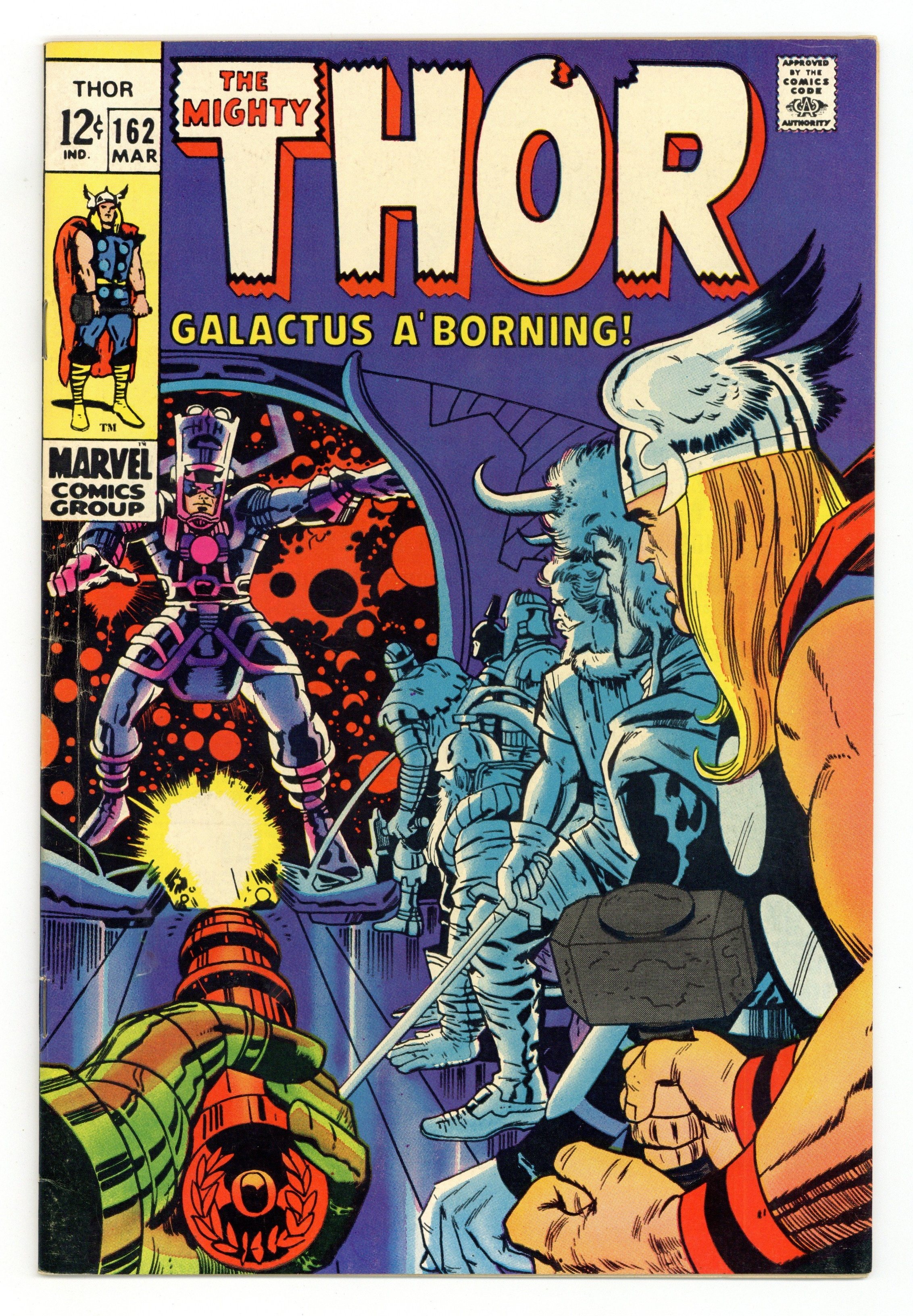 The beginning of the origin of Galactus (continued in Thor 168) in "Galactus is Born!" Script by Stan Lee, pencils by Jack Kirby, inks by Vince Colletta. Appearances by Balder, the Recorder, Hogun, Fandral, Volstagg, and Odin. Cameos by Galactus, Karnilla, and Heimdall. Kirby/Colletta cover. Cover price $0.12.