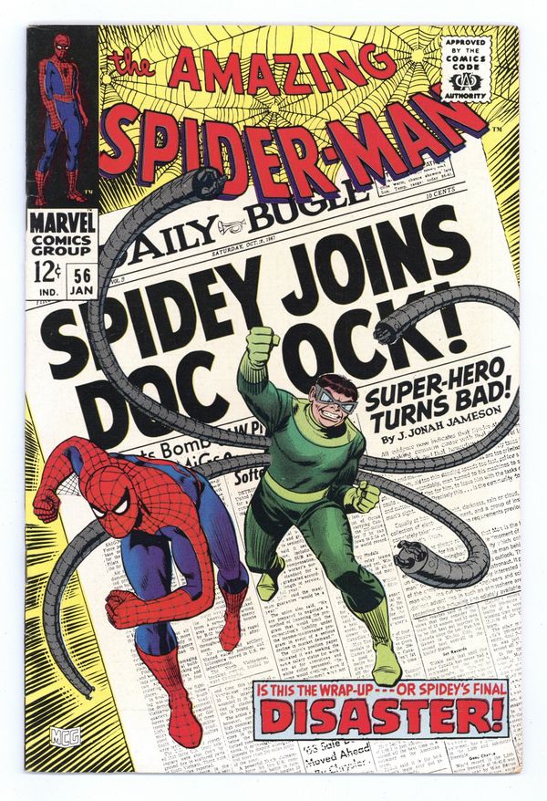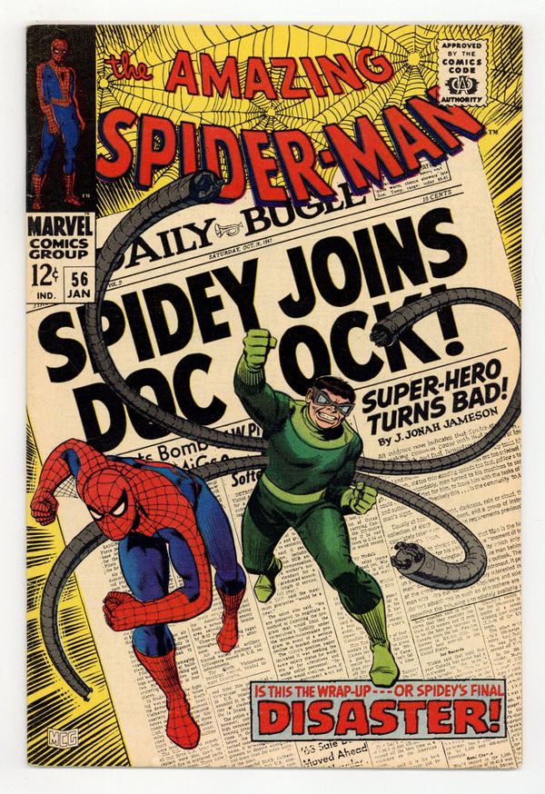 Starts Dec 8 Doctor Octopus appearance and the first appearance of Capt. Stacy in "Disaster" script by Stan Lee, pencils by John Romita Sr., inks by Mike Esposito as "Mickey Demeo." Spidey has amnesia, and Doc Ock convinces him that they are partners! Will he fall for it? Or just go along until his memory comes back? Romita cover. Reprinted in Marvel Tales # 41. 36 pgs. Cover price $0.12.