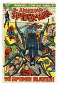 Tags: Marvel Legacy Numbering: Amazing Spider-Man (part 105), Spider-Man$23.50"The Spider Slayer!" Part 1 of 3. Script by Stan Lee. Pencils by Gil Kane. Inks by Frank Giacoia. Cover by Gil Kane and Frank Giacoia. Harry Osborn is out of the hospital after receiving treatment for his drug addiction. And to welcome Harry back to his apartment, Peter and Aunt Maythrow a party for him! Many of Harry's friends attend including Gwen, Mary Jane, and Flash Thompson -- plus Harry's father Norman. Meanwhile, J. Jonah Jameson meets with Spencer Smythe across town. Is Professor Smythe cooking up another spider slayer? Yes he is! And right at dusk the new and improved spider slayer attacks the web-slinger! Will this spider slayer live up to its name? Cameo appearances by Joe Robertson and Randy Robertson. (Notes: This issue is the first appearance of the spider slayer robot (Mark III) -- shaped like an actual spider. Spencer Smythe previously appeared in Amazing Spider-Man #58. This story was reprinted in Marvel Tales #84.) 36 pages. Cover price $0.20.