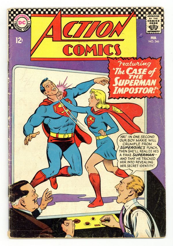 Tags: Print Run Statistics$24.00Cover pencils by Curt Swan, inks by George Klein. "The Man Who Sold Insurance to Superman!", script by Leo Dorfman, art by Wayne Boring; Insurance salesman Terry Mason will only be allowed to marry the boss's daughter if he can sell a $100 billion life insurance policy to Superman. Sgt. Rock's 6 Battle Stars ad. Letter to the editor from writer Mark Evanier. This issue also contains a statement of ownership - average print run 754,000; average paid circulation 491,135. "The Case of the Superman Impostor!", script by Robert Bernstein, pencils by Jim Mooney, inks by Al Plastino; The Professor has deduced that Superman is Clark Kent and he tricks Supergirl into confirming the fact, using a henchman who has been transformed into a double for Superman by plastic surgery. 36 Pages, Full Color. $0.12 Cover price $0.12.