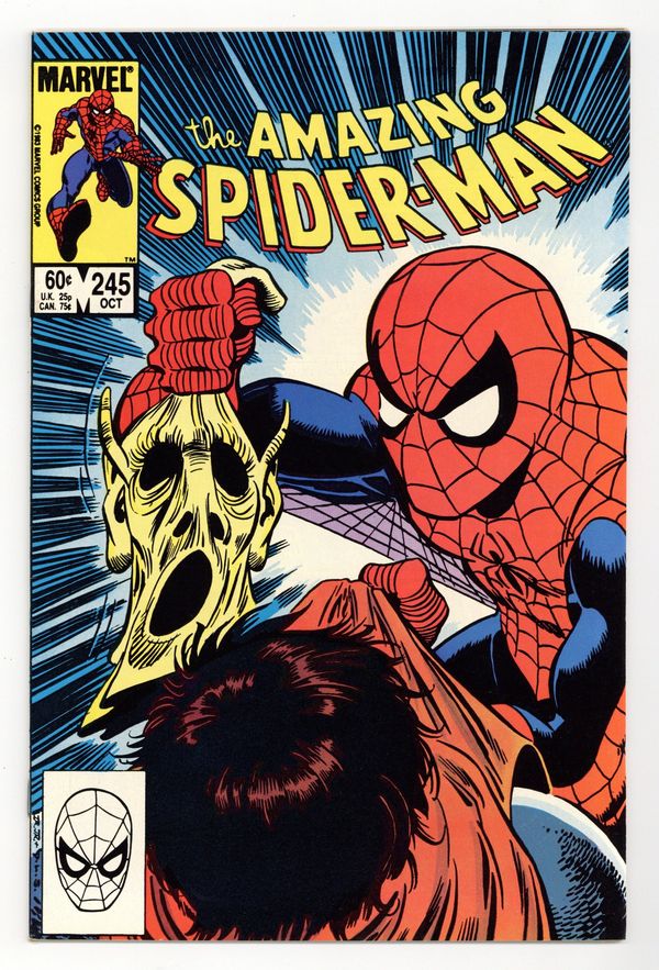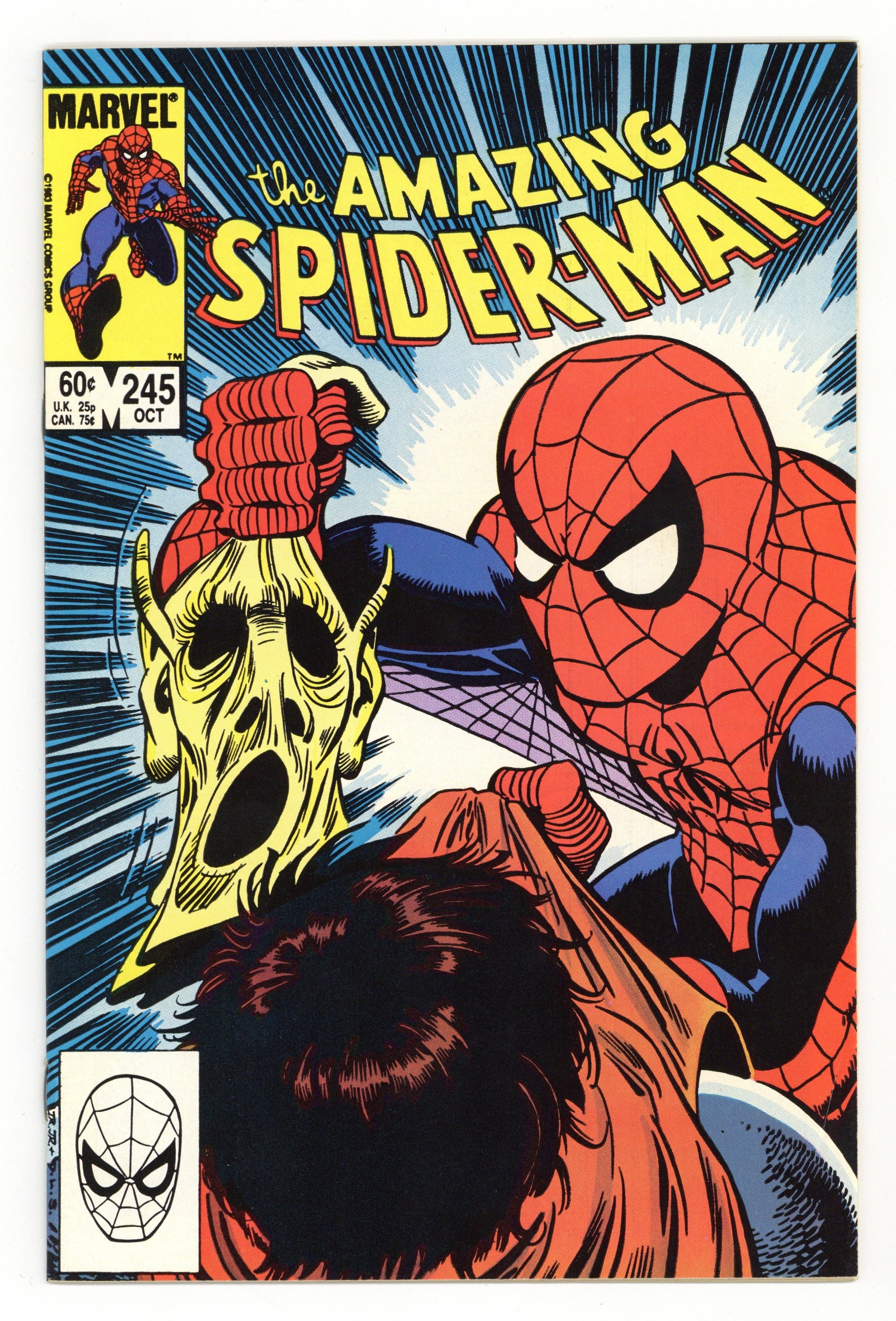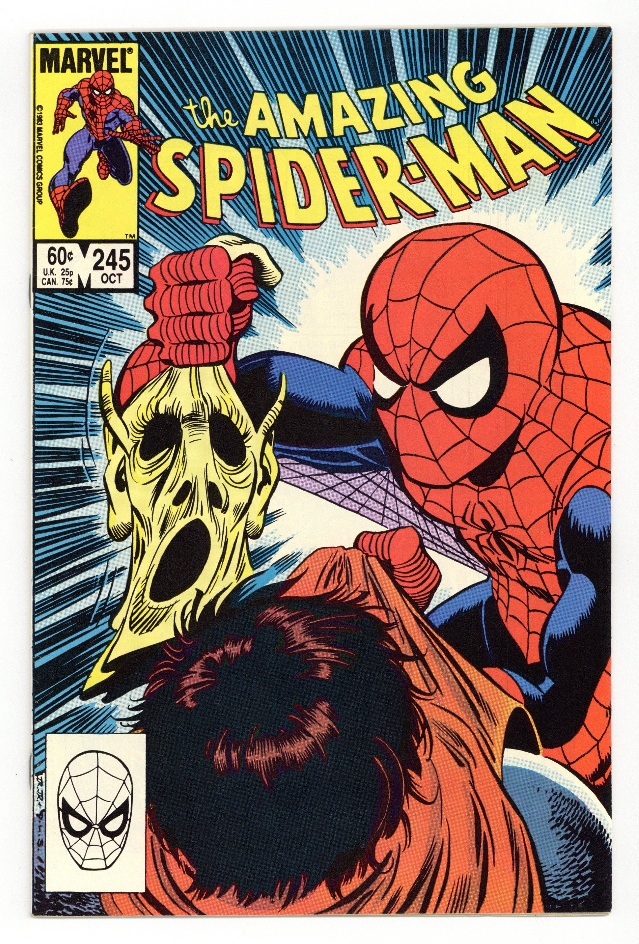 Tags: Marvel Legacy Numbering: Amazing Spider-Man (part 245), Spider-Man$23.00Direct Edition. "Sacrifice Play!" Part 2 of 2. Fourth appearance of the Hobgoblin. Script by Roger Stern. Art by John Romita Jr. (breakdowns) and Dave Simons (finishes). Cover by John Romita Jr. and Dave Simons. The wondrous wall-crawler thinks he knows who the Hobgoblin is! Lefty Donovan! Who? Apparently, the evidence from the police points in Lefty's direction! So, the web-slinger conducts a relentless search! And in the skies over Times Square, the Amazing Spider-Man and the (suddenly super-strong) Hobgoblin clash again! Will this battle solve the mystery of the goblin's identity? Or just add to the puzzle? Cameo appearances by Mary Jane Watson, Ned Leeds, and Betty Brant Leeds. (Note: The Hobgoblin appears next in Spectacular Spider-Man 85 -- a must read to keep up with the Hobgoblin's development.) 36 pgs. Cover price $0.60.