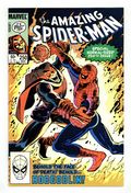 Tags: Marvel Legacy Numbering: Amazing Spider-Man (part 250), Spider-Man$17.00Direct Edition. "Confessions!" Part 2 of 3. Script by Roger Stern. Art by John Romita Jr. (breakdowns) and Klaus Janson (finishes). Cover by John Romita Jr. and Klaus Janson. The web-slinger's one-man war vs. the Hobgoblin continues! The amazing one privately contacts all the businessmen being extorted (by the goblin) in hopes of getting a lead on the super-villain's whereabouts! But eventually Spider-Man locates the Hobgoblin the old-fashioned way...with a spider tracer! In the Big Apple's Warehouse District, the wall-crawler comes face to face with his startled foe! Can the web-slinger score a quick victory and end the menace of the new goblin? Meanwhile, J. Jonah Jameson decides it's time to confess his involvement in the development of the Scorpion. The Daily Bugle's publisher prepares to take his mea culpa...in the pages of his own newspaper. Cameo appearances by Harry Osborn and Roderick Kingsley. Flashback cameo by the Kingpin. (Notes: This issue completes the sensational 2-year Stern-Romita Jr. run on the Amazing Spider-Man title. A magnificent collection of issues featuring the Black Cat, Foolkiller, Juggernaut, Cobra, and the Vulture; and of course, highlighted by the creation of the Hobgoblin.) 36 pgs. Cover price $0.60.