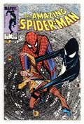 Direct Edition. "The Sinister Secret of Spider-Man's New Costume!" Guest-starring Mr. Fantastic and the Human Torch. Script by Tom DeFalco. Pencils by Ron Frenz. Inks by Joe Rubinstein. Cover by Ron Frenz and Joe Rubinstein. Chaos erupts at 410 Chelsea when Mary Jane Watson and the Black Cat meet inside Peter Parker's apartment! Wow, what a shocking development! To say that the web-slinger has some explaining to do...would be the understatement of the year! After the dust settles, the wall-crawler swings over to the Baxter Building to let Reed Richards analyze his new black costume. When Spider-Man learns his costume is "alive," he tries to pull it off; but the alien symbiote has other ideas! Can the Fantastic Four help Spidey with his major wardrobe malfunction? Cameo appearances by the Rose, Hobgoblin, and Puma. (Notes: The Black Cat and Mary Jane Watson are formally introduced to one another in Spectacular Spider-Man 123. The cover does not display the typical UPC box in the lower left-hand corner. This issue was reprinted in Marvel Tales 272.) 36 pages. Cover price $0.60.