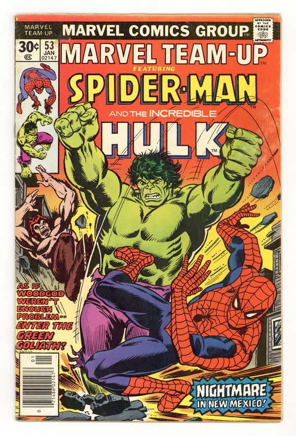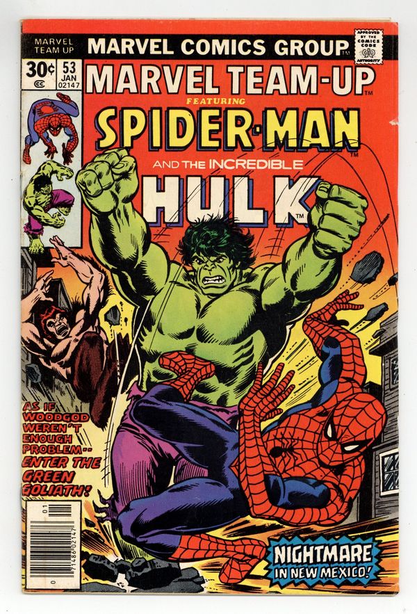 $11.25"Nightmare in New Mexico!" Part 1 of 3. Guest-starring Spider-Man and the Hulk. Script by Bill Mantlo. Pencils by John Byrne (1st work on the X-men). Inks by Frank Giacoia. Cover by Dave Cockrum. The Uncanny X-Men and the web-slinger are flying back home after their adventure in Marvel Team-Up Annual 1, when they suddenly spot a titanic battle raging down below between the Incredible Hulk and Woodgod! What has brought the green goliath and Woodgod to the Land of Enchantment? Spider-Man volunteers to investigate...and he may live to regret it! Cameo appearances by Professor Xavier and the X-Men (Banshee, Colossus, Cyclops, Nightcrawler, Phoenix, Storm, Wolverine). (Notes: This issue features John Byrne's first artwork on the X-men. Woodgod previously appeared in Marvel Premiere 31. The letters page includes a letter from comics cartoonist Fred Hembeck.) 36 pages. Cover price $0.30.