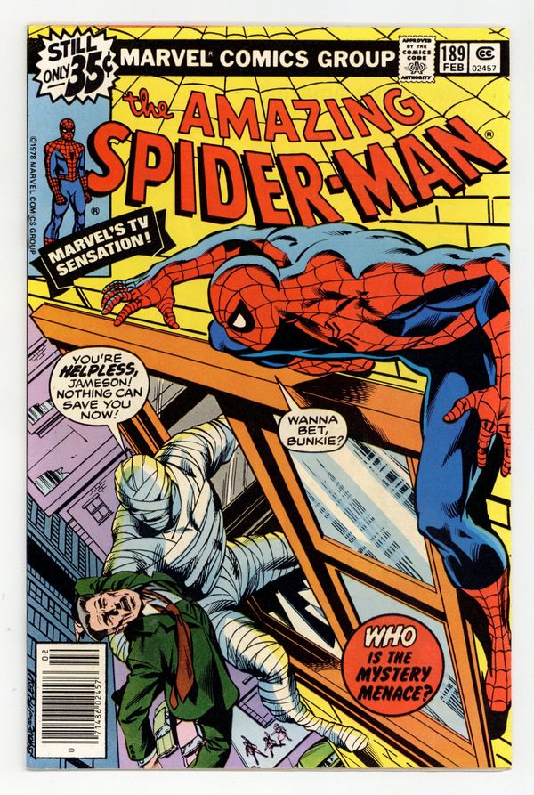 Tags: Marvel Legacy Numbering: Amazing Spider-Man (part 189), Spider-Man$16.50"Mayhem by Moonlight!" Part 1 of 2. Script by Marv Wolfman. Art by John Byrne (breakdowns) and Jim Mooney (finishes). Cover by John Byrne and Bob McLeod. J. Jonah Jameson desperately searches for clues in the kidnapping of his son John! Fearing the worst the stressed out publisher of the Daily Bugle brings every resource to bear! While studying the facts, Joe Robertson realizes that the mysterious kidnapper may have a vendetta against not only Jonah, but the web-slinger too! Jonah doesn't care about Spider-Man though, he only wants to see his son again! And as shown on the terrific cover, J. Jonah Jameson will be reunited with his son! But will it be John the man...or the Man-Wolf? Cameo appearances by Aunt May, Betty Brant, Dr. Marla Madison, and Professor Spencer Smythe. (Notes: The web-slinger previously battled the Man-Wolf in Marvel Team-Up 37. This is one of only three issues John Byrne drew for the Amazing Spider-Man title (1st series): issues 189, 190, and 206.) 36 pgs. Cover price $0.35.