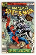 "In Search of the Man-Wolf!" Part 2 of 2. Script by Marv Wolfman. Art by John Byrne (layouts) and Jim Mooney (finishes). Cover by Keith Pollard and Al Milgrom. In incredible fashion the Man-Wolf (aka John Jameson) has reappeared in Manhattan and snatched his father! And now the wondrous wall-crawler chases the lupine beast across the city to rescue Jonah! As Spider-Man and the Man-Wolf battle towards the East River, Professor Spence Smythe revels in his victory! The amazing one finally corners the Man-Wolf atop the Brooklyn Bridge! It's a place the web-slinger knows all too well. With John Jameson's life hanging in the balance, can the Amazing Spider-Man prevent history from repeating itself? A powerful two-part story. (Notes: The plot briefly crosses over with the story in Fantastic Four 204. The Man-Wolf returns in Savage She-Hulk 13 & 14; and battles the web-slinger again in Spectacular Spider-Man Annual 3.) 36 pages Cover price $0.35.